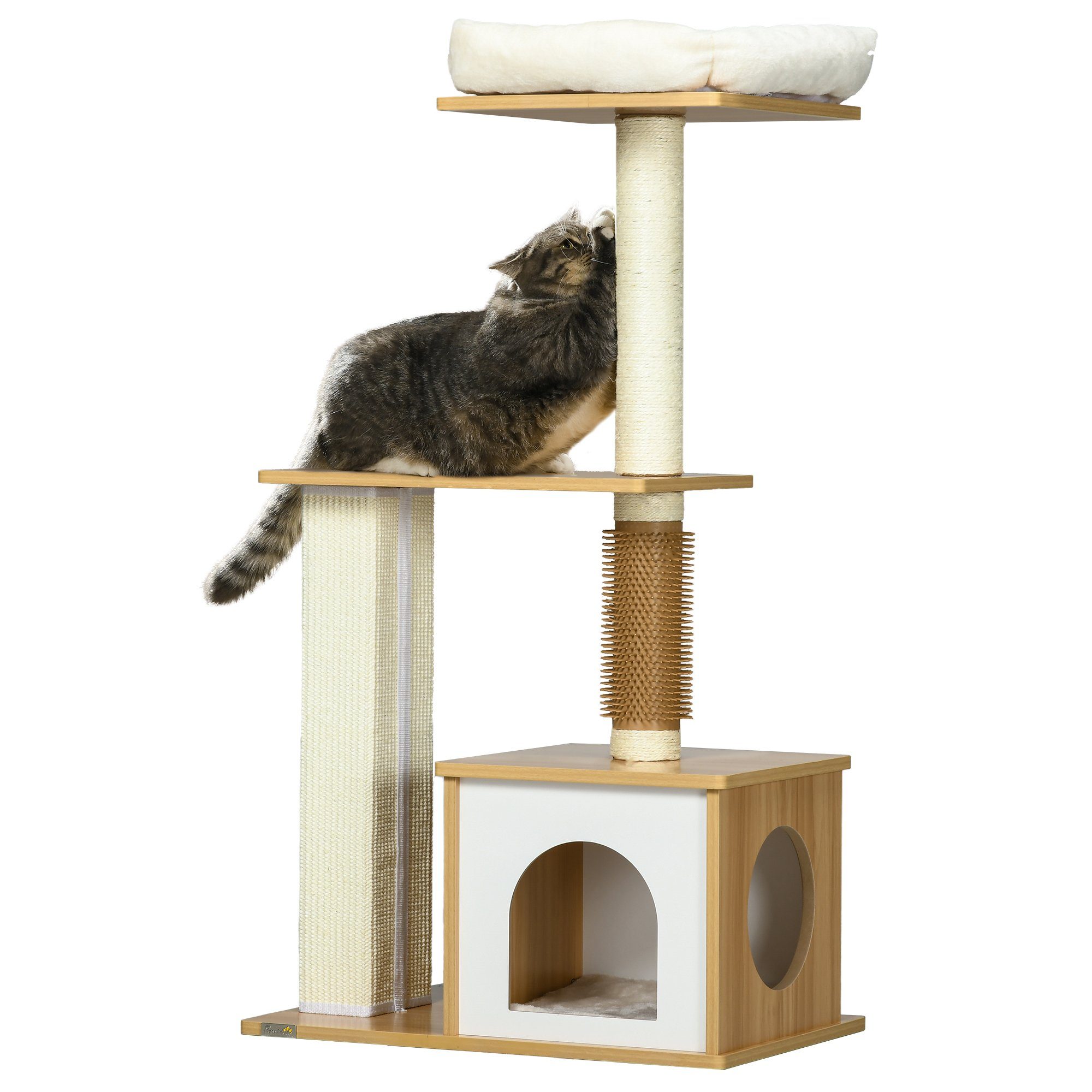 Schlafen und Spielen an einem Ort, mit diesem Katzenbaum von PawHut. Mit einer Katzenhöhle, einem Katzenbett, einer Plattform, einer Kitzelsäule und 2 Kratzsäulen können Katzen sich entspannen und für endlose Unterhaltung schlafen. Mit Kratzsäulen, die mit strapazierfähigen natürlichen Sisalseilen umwickelt sind, eignet er sich gut zum Schärfen ihrer Krallen und zum Schutz deiner Möbel. Mit weichem und bequemem Plüschstoff bezogen und aus robustem Holzwerkstoff gefertigt, ist er langlebig und stabil.