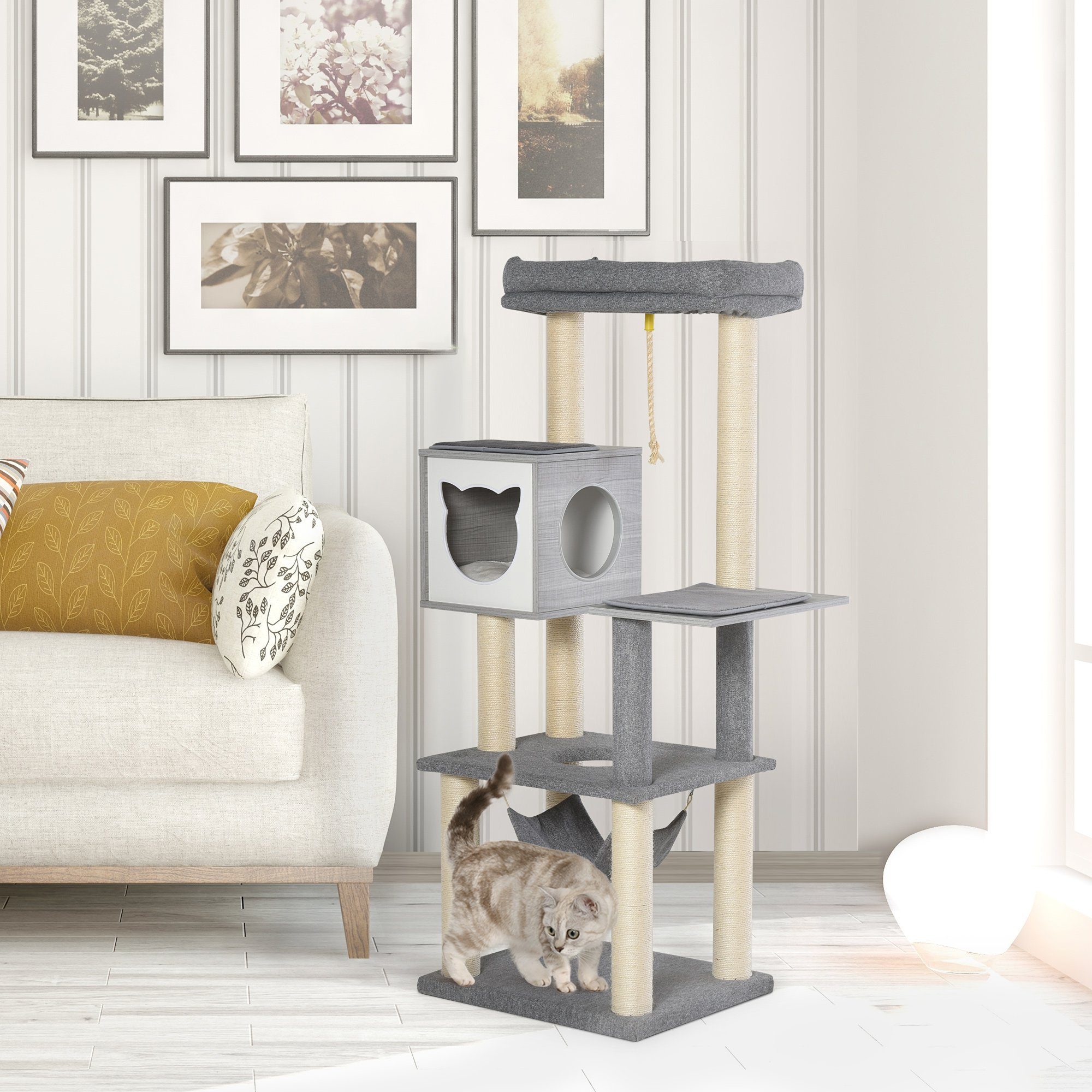 Befriedigen Sie die natürlichen Instinkte Ihrer Katze auf sichere Art und Weise mit diesem Katzenkratzbaum von PawHut! Dieses Multiaktivitätszentrum bietet mit natürlichem Sisal bedeckte Kratzbäume, ein Hängeseil, eine weiche und bequeme Eigentumswohnung, eine Hängematte und Sitzstangen. Katzenkratzer nützen sowohl dem Haustier als auch dem Besitzer, indem sie einen Ort bieten, an dem die Lust der Katzen auf Krallen und Klettern gelindert wird, und Ihre Teppiche und Hausrat vor Schäden bewahren. Ruhen Sie sich aus, spielen Sie, bewegen Sie sich, Ihre Katzen können den ganzen Tag darauf verbringen, eine bequeme Einheit für Ihre pelzigen Freunde.