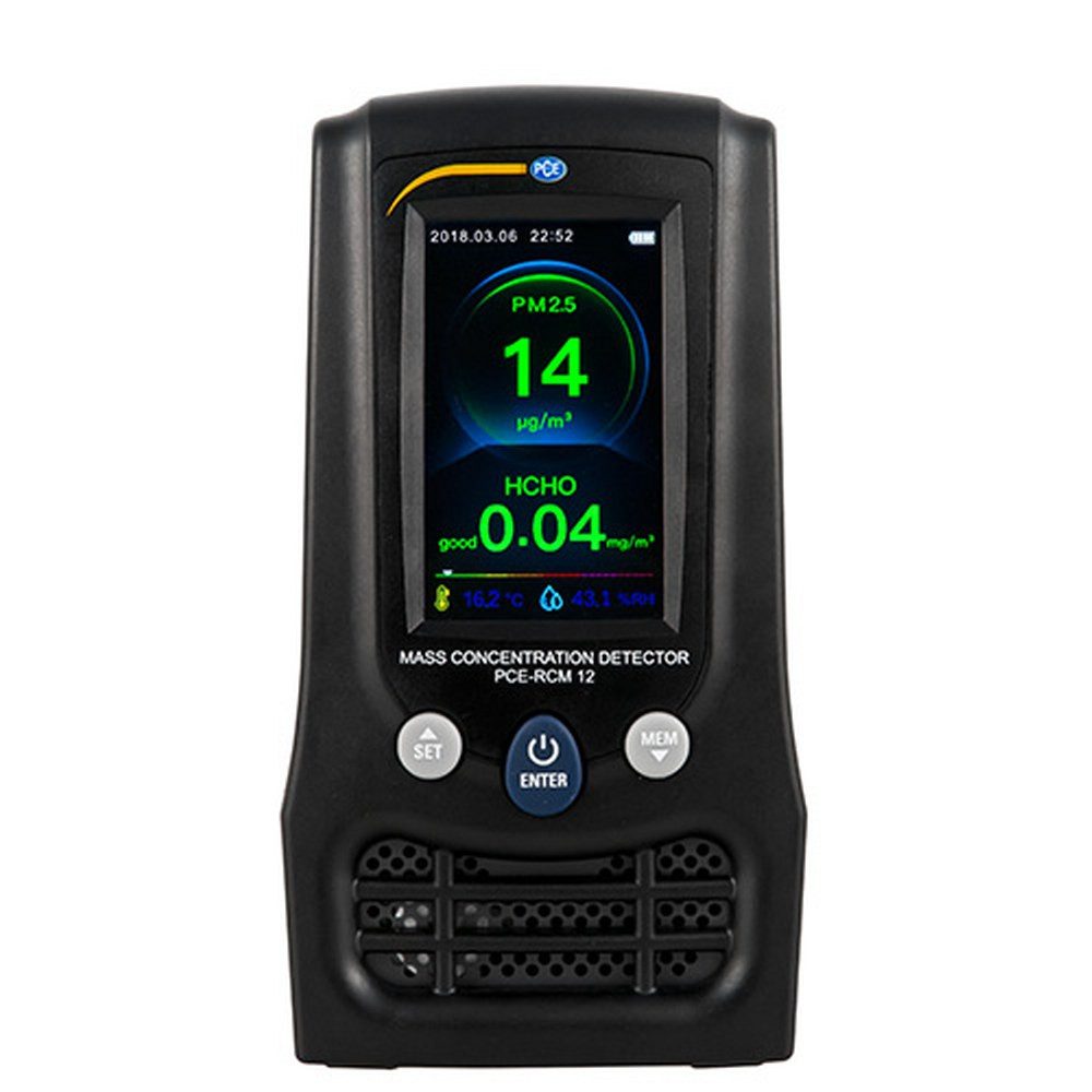 Die Anzeige der Konzentrationen wird ferner durch die Verwendung einer Farbbewertungsskala vereinfacht, da auf diese Weise direkt Informationen über die Luftqualität an den Verwender weitergegeben werden. Neben der orientierenden Messung von Formaldehyd, das sich gesundheitsschädlich auswirken kann besteht auch ebenso eine orientierende Messung der Feinstaubbelastung durchgeführt werden. Dabei unterschieden werden Partikel mit einem maximalen Durchmesser von bis 10 µm (PM10) und Partikel bis zu einem Durchmesser von 2,5 µm (PM2,5).