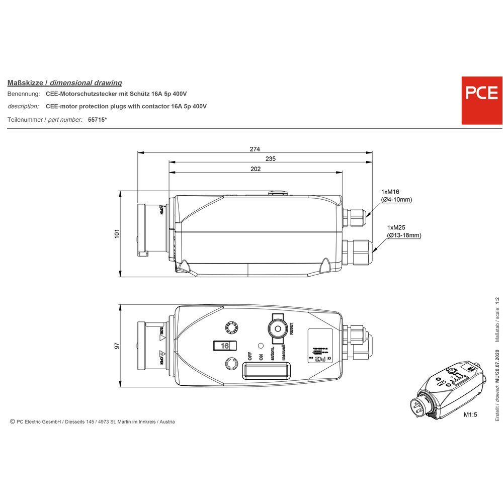 CEE-Motorschutzstecker Schütz mit Phasenwender, Drehfeldkontrolle und Betriebsanzeige