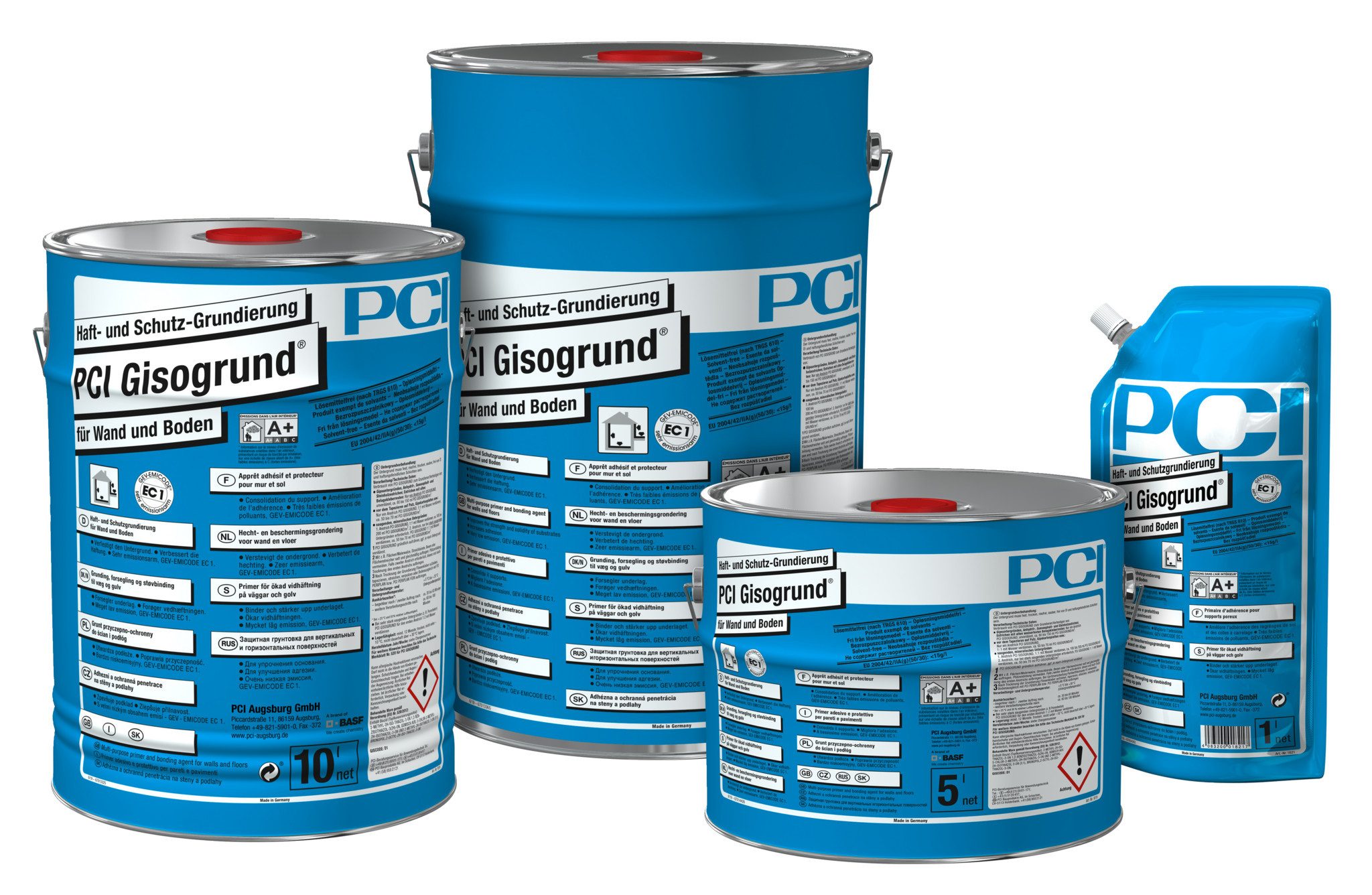 Haft- und Schutzgrundierung für Wand und Boden. Anwendungsbereiche Für innen und außen. Für Wand und Boden. Zum Grundieren vor dem Auftragen fließfähiger Bodenausgleichsmassen (z. B. PCI Periplan oder PCI Periplan Fein) wie auch standfester Bodenausgleichsmassen sowie anderer hydraulisch erhärtender Mörtel und Anhydritestrichen. Zum Grundieren von Porenbeton und Ziegelmauerwerk an Wänden vor dem Auftragen von Gips- und Kalkgipsputzen. Zum Grundieren von saugenden Untergründen, um nachfolgende Materialien vor zu schnellem Wasserentzug zu schützen. Zum Grundieren von Anhydritestrichen und Bauplatten. Zum Grundieren von Gussasphaltestrichen vor dem Auftragen von PCI-Fliesenklebern. Zum Verfestigen von mehlenden, saugenden Estrichoberflächen und Putzen im Bauteninneren vor dem Verlegen von Fliesen und Mosaik. Zum feuchtigkeitsbremsenden Verfestigen und Grundieren von Gipsputzen, Gipsdielen, Gipskartonplatten, Gipsfaserplatten, Porenbeton, Beton, Asphalt, Putzen und Mauerwerk als Vorbehandlung vor dem Fliesenlegen und Tapezieren. Eigenschaften Lösemittelfrei nach TRGS 610; Giscode D 1. Sehr emissionsarm, GEV-EMICODE EC 1. EU 2004/42/IIA(g)(50/30): < 15 g/l. Verbessert die Festigkeit und Tragfähigkeit der Untergründe und erhöht die Haftung von Fliesen, Putzen und Tapeten. Haftsicher, PCI-Fliesenkleber haften sicher auf den mit PCI Gisogrund grundierten Flächen. Schützt Dünnbettmörtel oder Ausgleichsspachtel vor zu schnellem Wasserentzug auf saugenden Untergründen, verlängert die klebeoffene Zeit, verbessert die Haftung und vermeidet die Bildung von Schwundrissen. Verhindert Blasenbildung und zu schnellen Wasserentzug beim Untergrundausgleich, z. B. mit PCI Periplan oder PCI Periplan Fein. Schützt Calciumsulfat/Anhydrit - Estriche vor Ettringitbildung. Erleichtert das spätere Ablösen von Tapeten bei Erneuerungsarbeiten. Entspricht den Richtlinien des Bundesverbandes der Gipsbauplatten- und Gipsindustrie. Kontrollfarbe Blau; ermöglicht gute Flächenkontrolle.