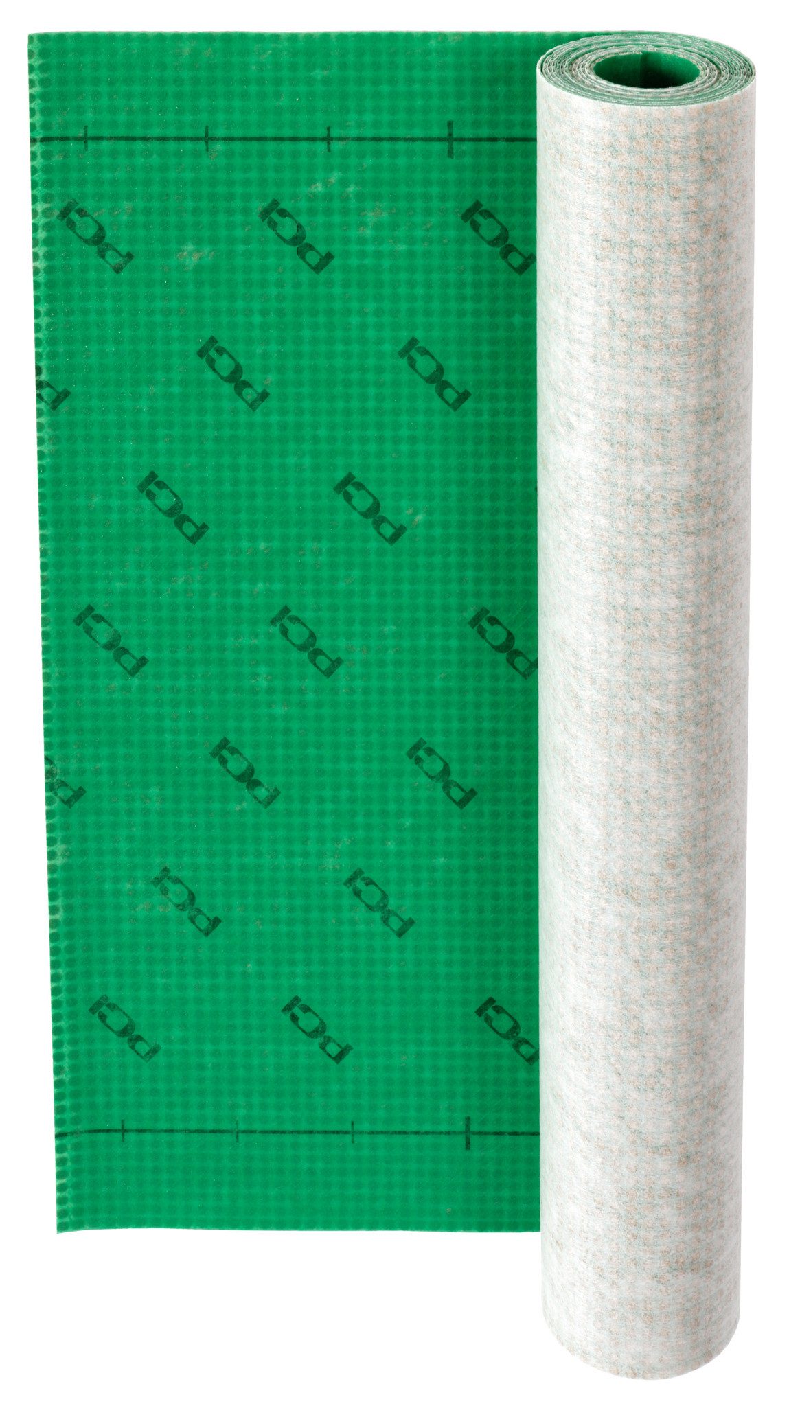 Entkopplungsbahn unter Keramik- und Naturwerksteinbelägen. Anwendungsbereiche Für innen. Für Boden. Für alle Formate von Keramik- und Naturwerksteinbelägen. Auf feuchtigkeitsempfindlichen, saugenden Untergründen, z. B. Holzspanplatten, OSB-Platten, Magnesitestriche, Gipsfaserplatten, Anhydritfließ- oder Gipsestriche. Auf mineralischen, saugenden Untergründen, z. B. Beton, Estrich und leicht verlaufenden Ausgleichsmassen, z. B. PCI Periplan. Auf mineralischen, nichtsaugenden Untergründen, z. B. alte Keramikbeläge, Gussasphaltestriche (nur im Innenbereich). Auf Fußbodenheizung. Auf jungen Zementestrichen (Mindestgüte CT F4), sobald sie begehbar und ausreichend tragfähig sind. Auf Anhydritestrichen mit einer Restfeuchte kleiner 2 % (Messung mit CM-Gerät). Einsetzbar in den Категории EK-W-S, EK-H-S, EK-G-S, EK-H-S gemäß ZDB-Merkblatt "Entkoppelungssysteme" Eigenschaften Verformbar, gleicht Spannungen, Untergrundverformungen und Temperaturschwankungen aus. Rissüberbrückend, hohe Sicherheit auch bei nachträglich auftretenden Untergrundrissen. Gebrauchsfertig, die Entkopplungsbahn wird nur auf den Untergrund aufgeklebt. Schnelle Arbeitsfolge, nach Aufkleben der Entkopplungsbahn können anschließend Keramik- oder Naturwerksteinbeläge aufgebracht werden. Trittschallmindernd, der Raumschall und der Trittschall der verlegten Keramik- oder Naturwerksteinbeläge wird reduziert.