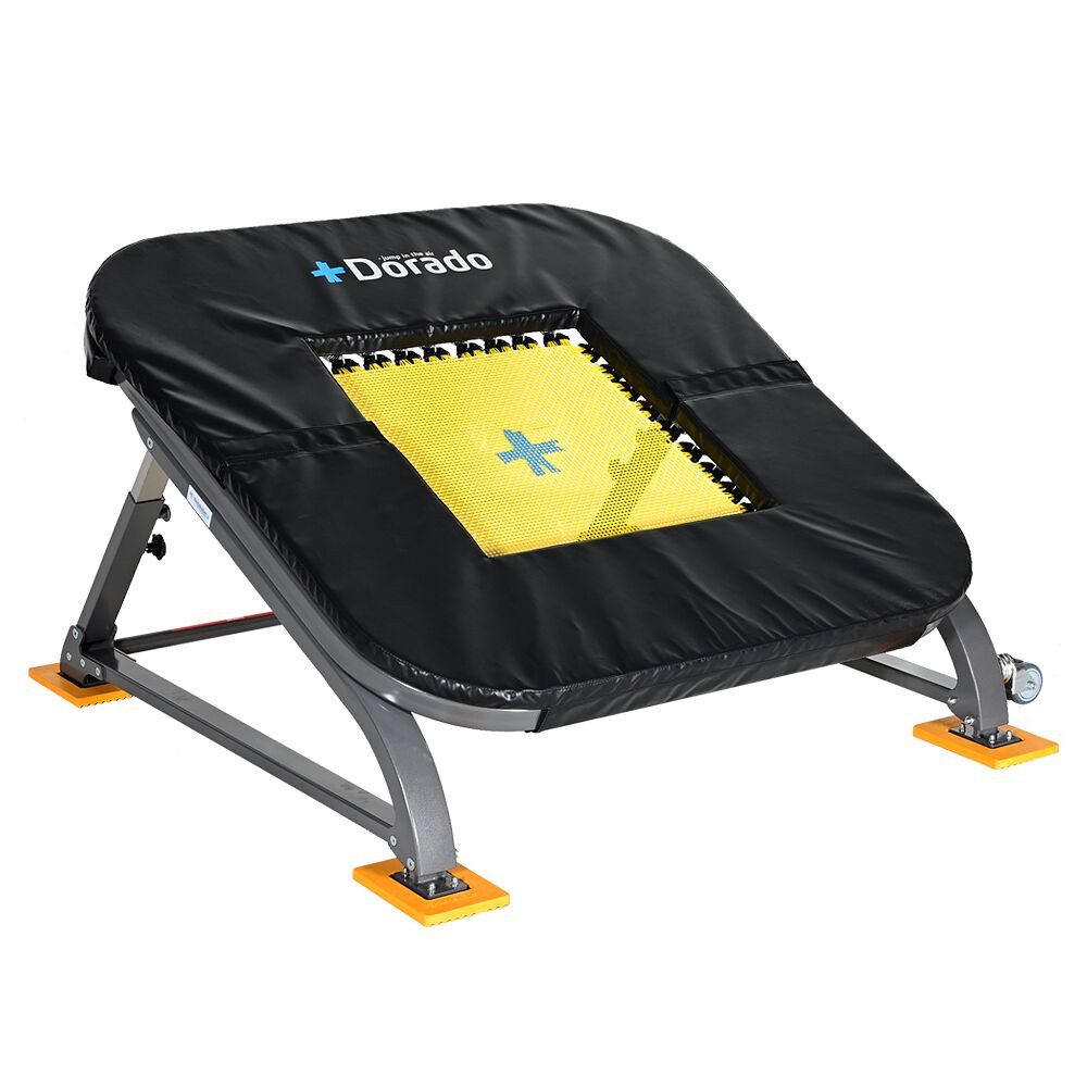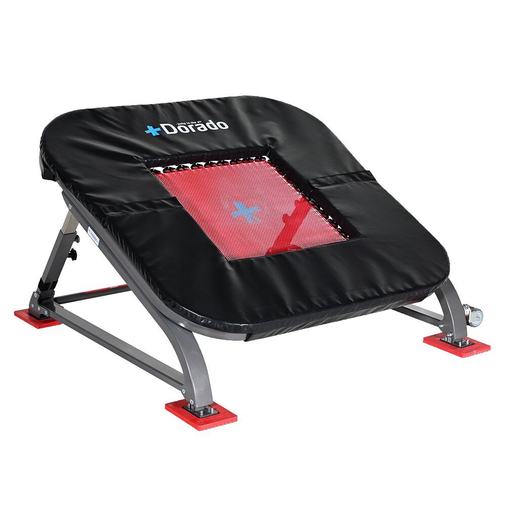 Das PE-Redskaber Minitramp für TeamGym "Dorado" zeichnet sich durch sein stilvolles Design und vor allem durch den sehr stabilen sowie kraftvollen Zug aus. Es steht auch unter schwersten Lasten stets stabil, bietet einen ausgezeichneten Rückprall und ist zudem sehr leise. Dank der einfachen Höhenverstellung lässt es sich von Junioren, Senioren sowie Eliteturnern ideal nutzen. Darüber hinaus bietet das PE-Redskaber Minitramp für TeamGym "Dorado" Transporträder, stabile Rahmenpolster auf allen Seiten und rutschfeste Füße. Die Beine sind verstellbar und mit lasergravierten Markierungen für eine einstellbare Höhe versehen. Ohne Werkzeug lässt es sich einfach und schnell zusammenklappen. Hervorzuheben ist ebenfalls die Art und Weise, wie die Federn befestigt sind: Sie sind auf der Innenseite des Rahmens angebracht, sodass sie den Stahlrahmen auch bei stärksten Zugbelastungen nicht berühren – die Federn können frei schwingen.