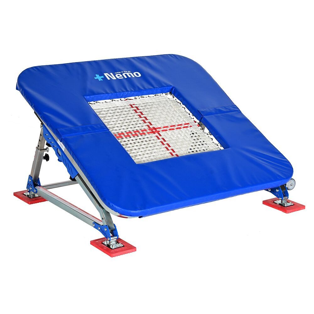 Das PE-Redskaber Minitramp "Nemo" ist speziell für Kinder und Jugendliche konzipiert. Dank des beweglichen Rahmens sind 3 Einstellungsmöglichkeiten möglich. Somit lässt sich das Trampolin einfach in die entsprechende und optimale Sprungposition bringen. Beispielsweise können Sie das Minitramp für die kleinsten Turner:innen oder für reine Anfänger_innen sehr niedrig positionieren. Beherrschen Ihre Schützlinge die Sprungtechnik, lässt es sich höher einstellen. Darüber hinaus ist die Höhe mittels verstellbarer Beine regulierbar. Standardmäßig wird das PE-Redskaber Minitramp "Nemo" mit 32 Federn geliefert, welche sich auf 28 oder 24 Federn anpassen lassen. Zudem können Kinder das Trampolin durch die horizontale Einstellung als "Mini"-Großtrampolin verwenden.