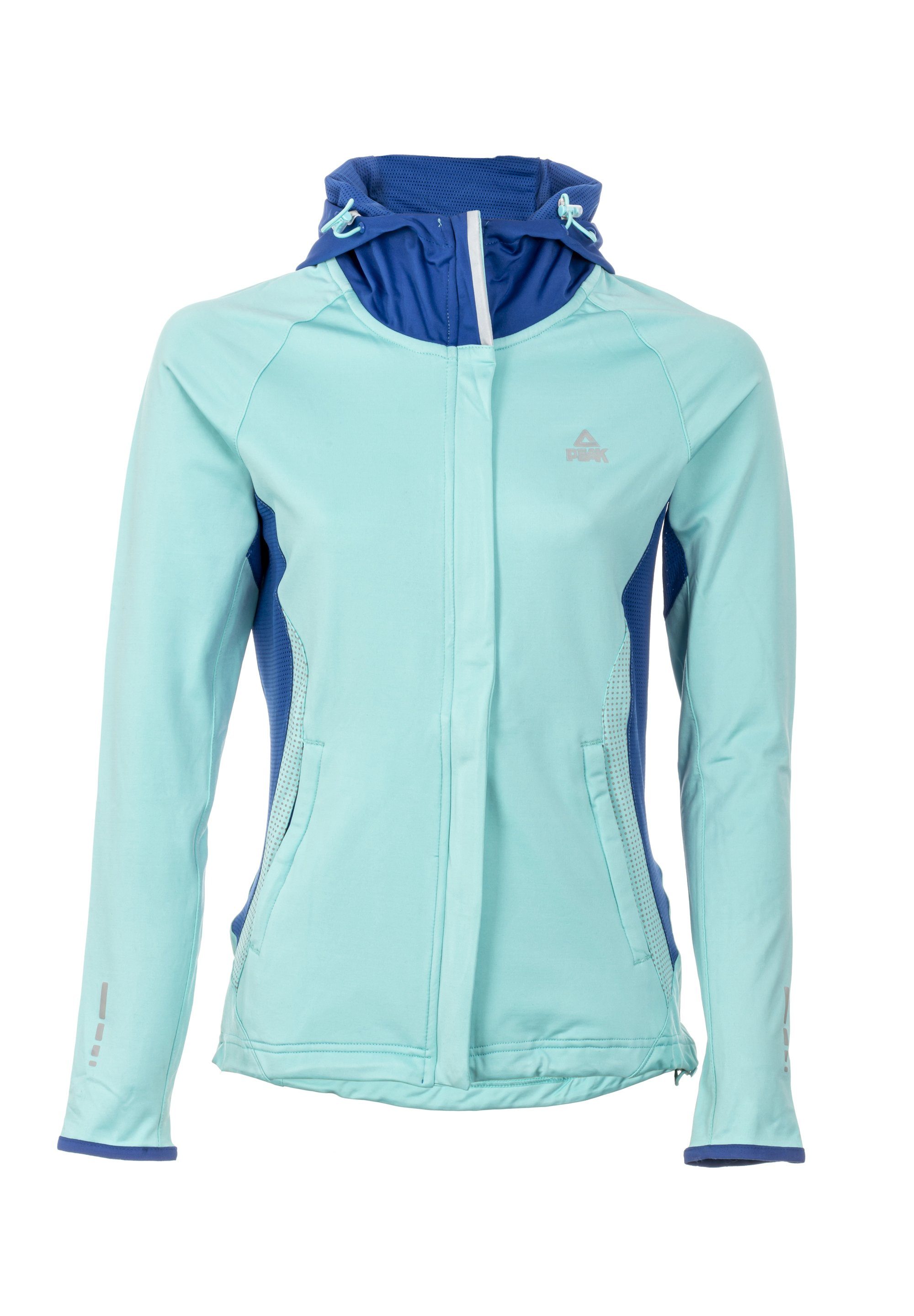 Die türkisblaue PEAK-Trainingsjacke für Fitnes s und Running