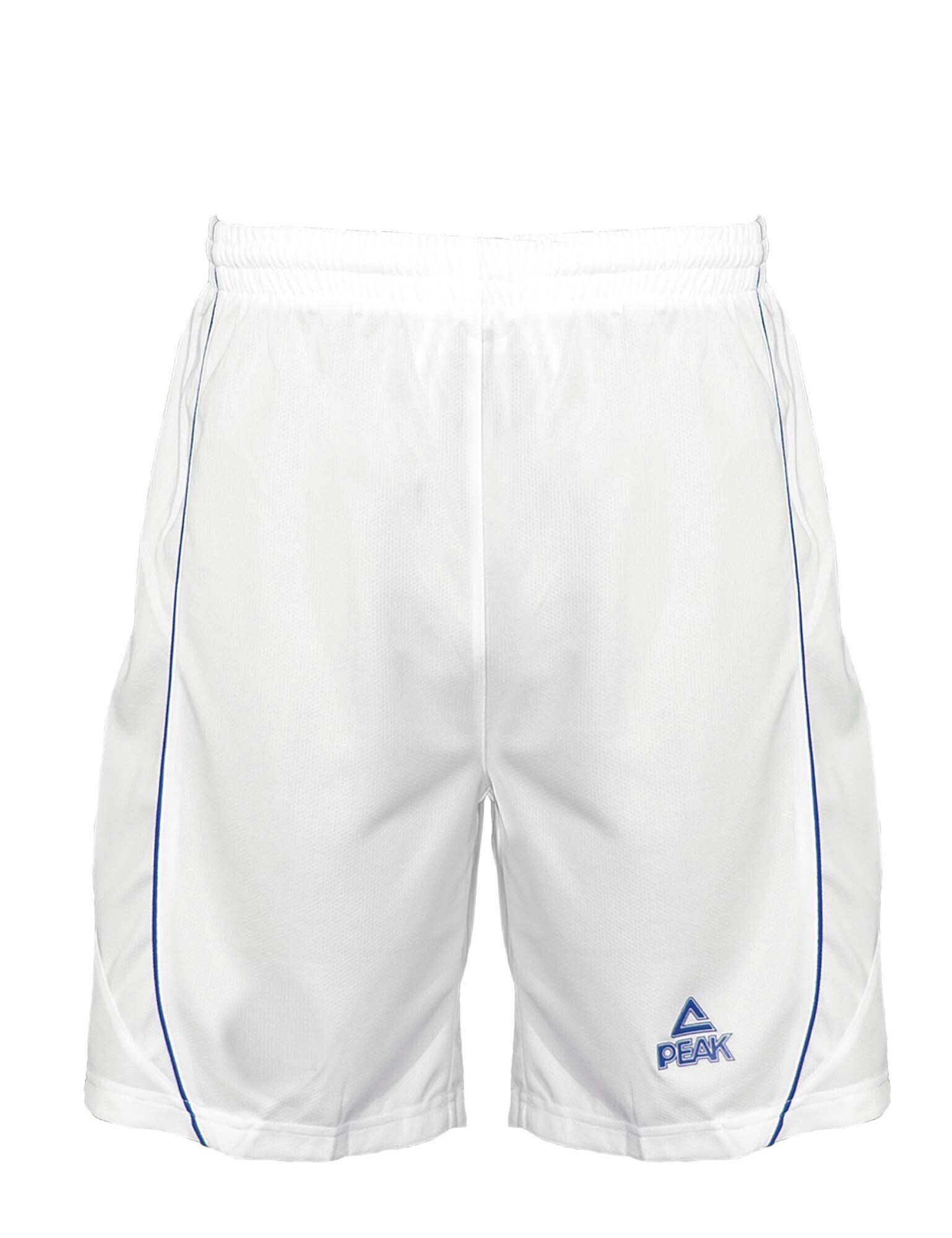 Die Shorts haben farblich abgesetzte Streifen seitlich und ein kleines PEAK-Logo auf dem linken Bein.