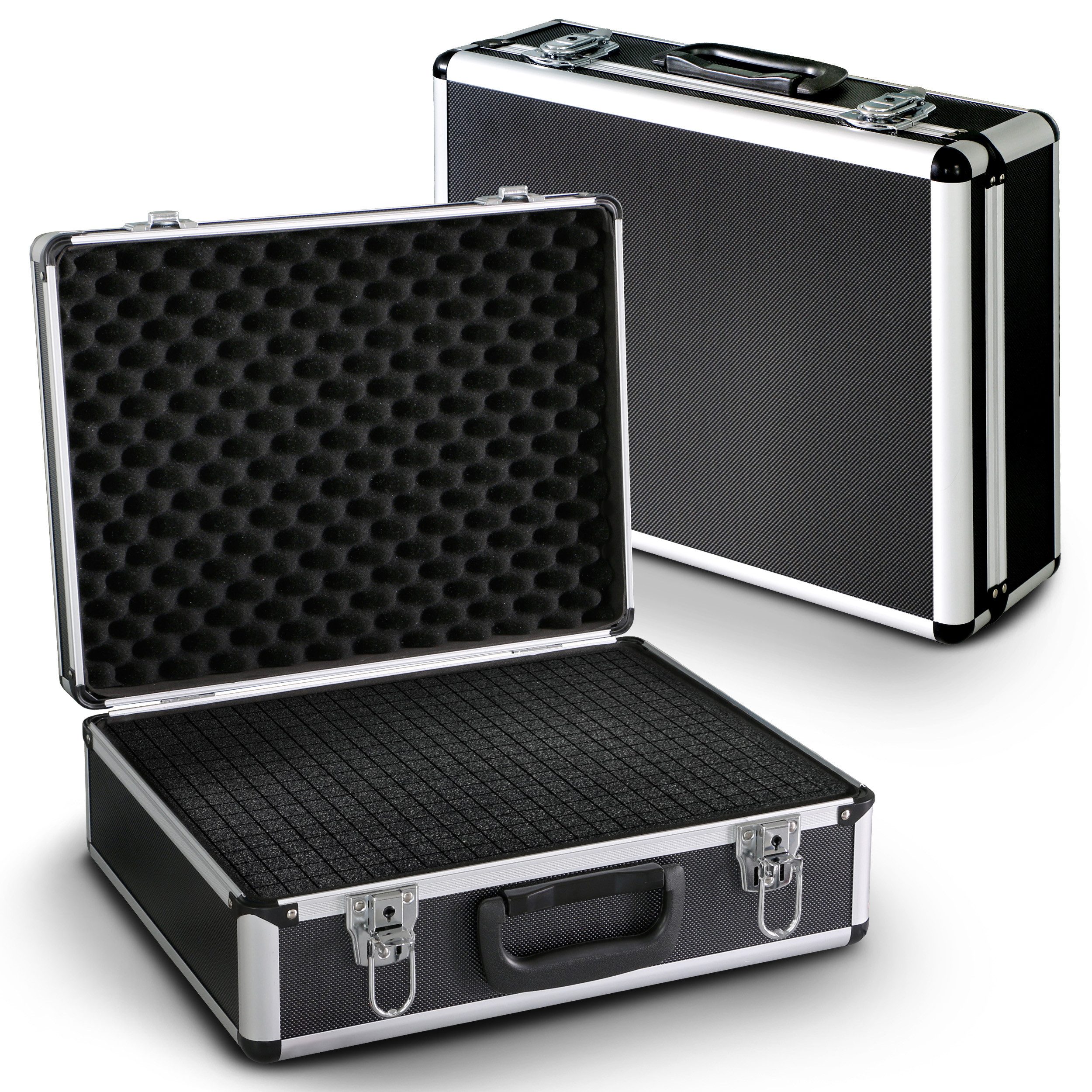 In dem abschließbaren Universal-Tragekoffer könnnen Sie ihre empfindlichen Elektronikgeräte sicher auf Reisen und dem Weg zum Arbeitseinsatz aufbewahren. Um diese stabilen Koffer universell an das jeweilige Equipment anzupassen, ist jeder Koffer mit einer 1 cm dicken Schaumstoffeinlage gepolstert und zusätzlich mit zwei 3 cm dicken, herausnehmbaren Würfelschaumstoffeinlagen ausgelegt, welche sich ohne zusätzliches Werkzeug leicht anpassen lassen. Durch die Doppelnut in der Schließkante bieten diese hochwertigen Koffer eine hohe Sicherheit vor dem Eindringen von Staub oder Regen und sind daher der Ideale Begleiter für den täglichen Arbeitseinsatz im Außendienst.