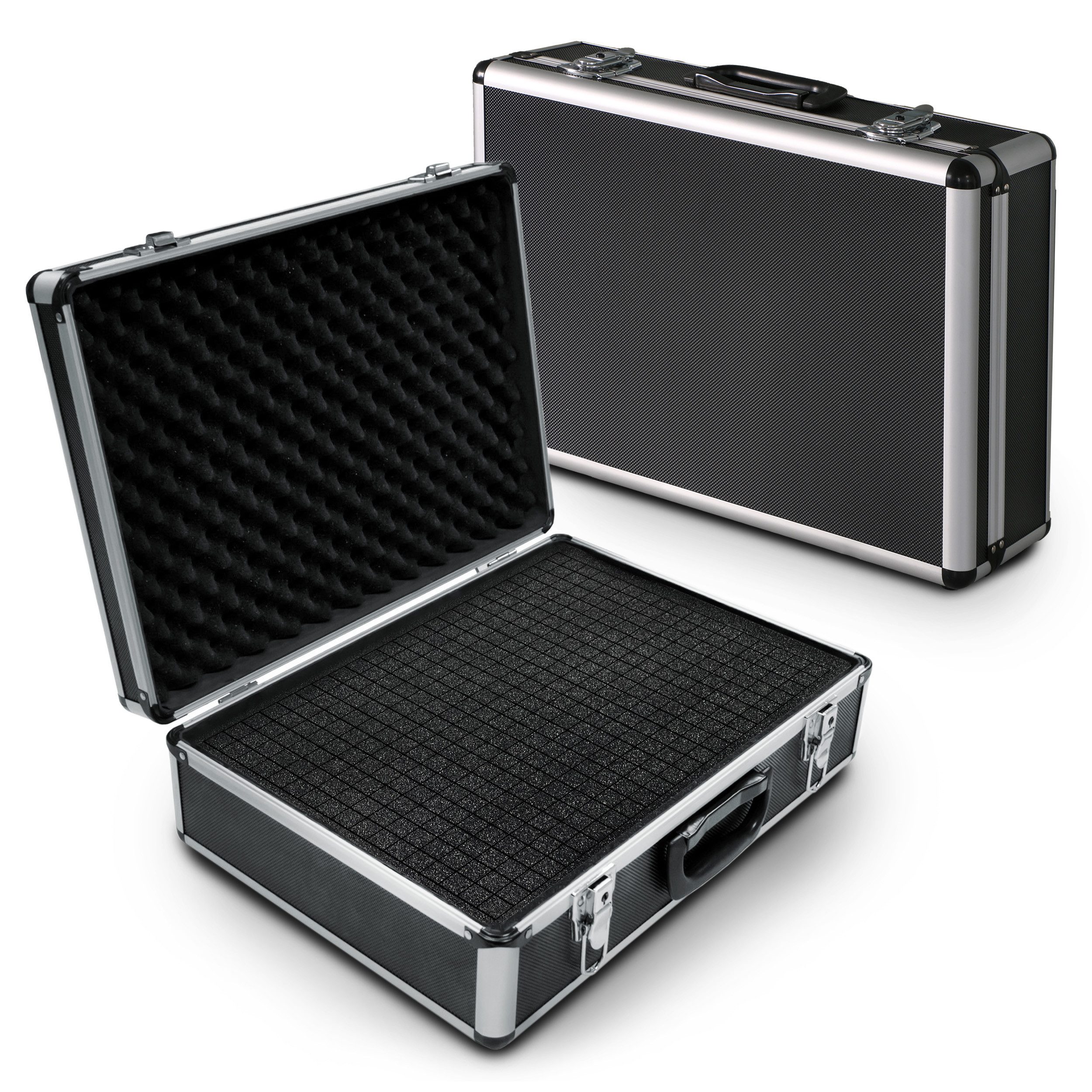 In dem abschließbaren Universal-Tragekoffer könnnen Sie ihre empfindlichen Elektronikgeräte sicher auf Reisen und dem Weg zum Arbeitseinsatz aufbewahren. Um diese stabilen Koffer universell an das jeweilige Equipment anzupassen, ist jeder Koffer mit einer 1 cm dicken Schaumstoffeinlage gepolstert und zusätzlich mit zwei 3 cm dicken, herausnehmbaren Würfelschaumstoffeinlagen ausgelegt, welche sich ohne zusätzliches Werkzeug leicht anpassen lassen. Durch die Doppelnut in der Schließkante bieten diese hochwertigen Koffer eine hohe Sicherheit vor dem Eindringen von Staub oder Regen und sind daher der Ideale Begleiter für den täglichen Arbeitseinsatz im Außendienst.