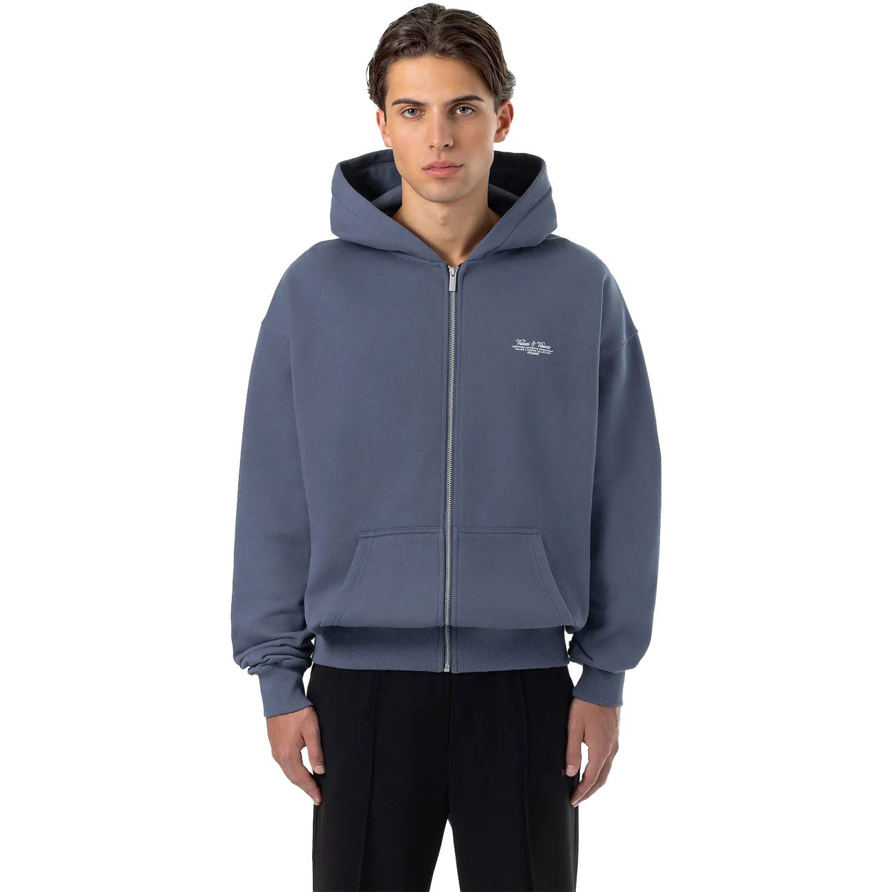 Die Zip Bronson Oversized Sweat Jacket ist mit ihrer oversized Passform und dem Values und Visions-Print besonders stylisch und modern. Die Bauchtasche im Känguru-Style, die Bündchen und der Saum und die große Kapuze machen den Hoodie Style komplett.