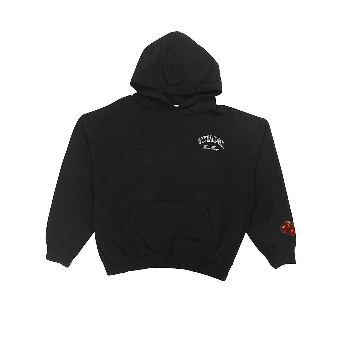 Der Hoodie präsentiert sich in einem tiefen Schwarzton, der jedem Outfit eine subtile, aber dennoch markante Note verleiht. Der oversized Fit und die fallenden Schultern sorgen für eine lässige Silhouette und bieten Ihnen maximale Bewegungsfreiheit und Komfort.