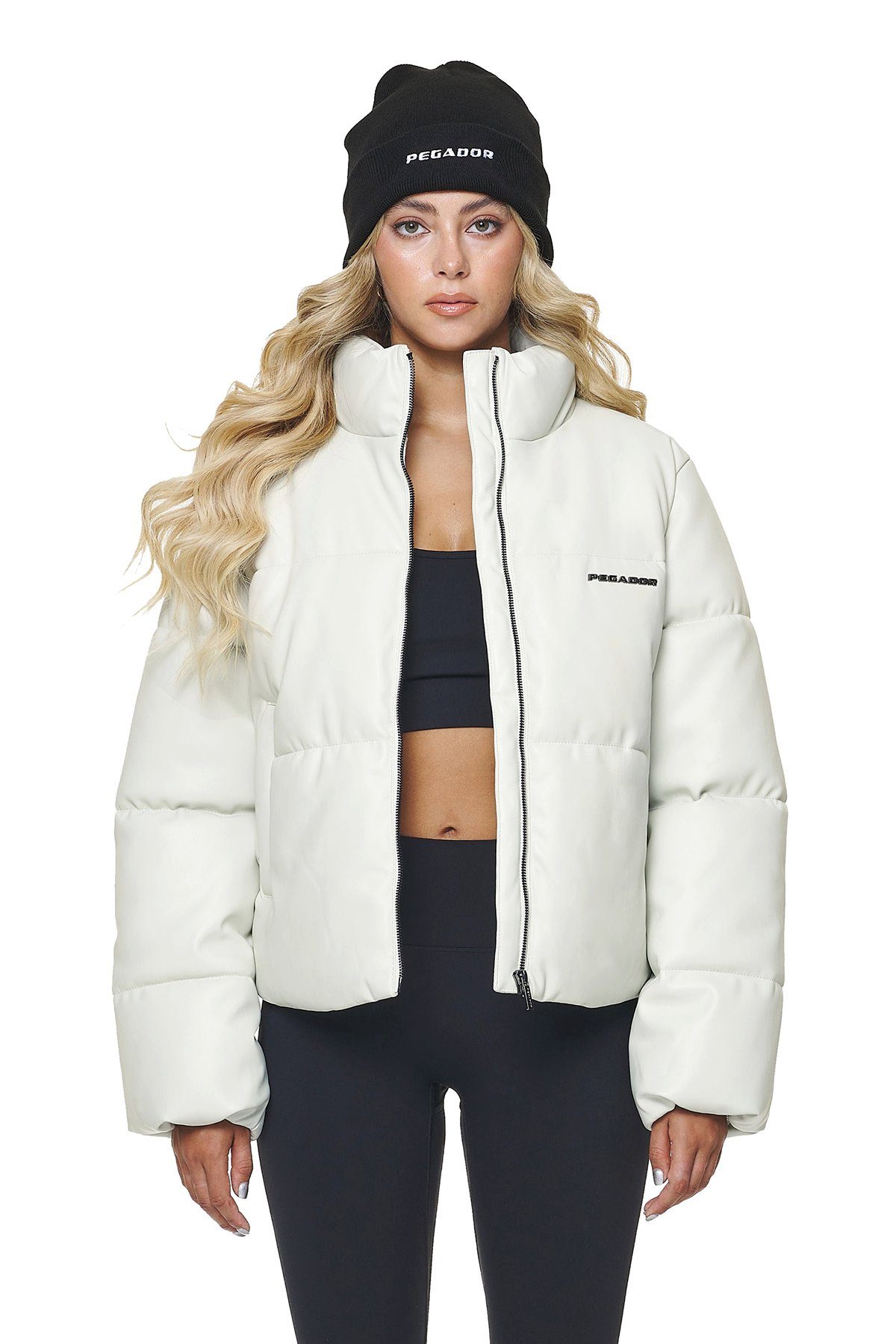 Eleganz trifft auf Funktionalität mit der Pegador Damen Jacket Baker Vegan Leather Puffer in Bone White. Dieses Meisterwerk der Mode ist nicht nur eine Hommage an den zeitlosen Stil, sondern auch an die Verantwortung gegenüber unserer Umwelt.