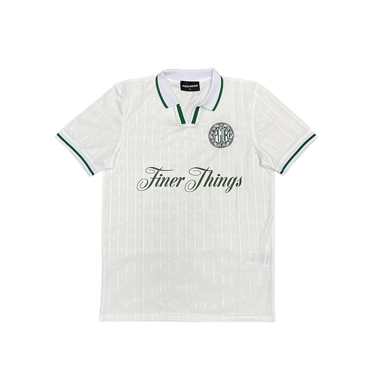 Das Pegador Herren Timmis Trikot in weiß/grün ist oversized und verfügt über ein College-Umschlagkragen
