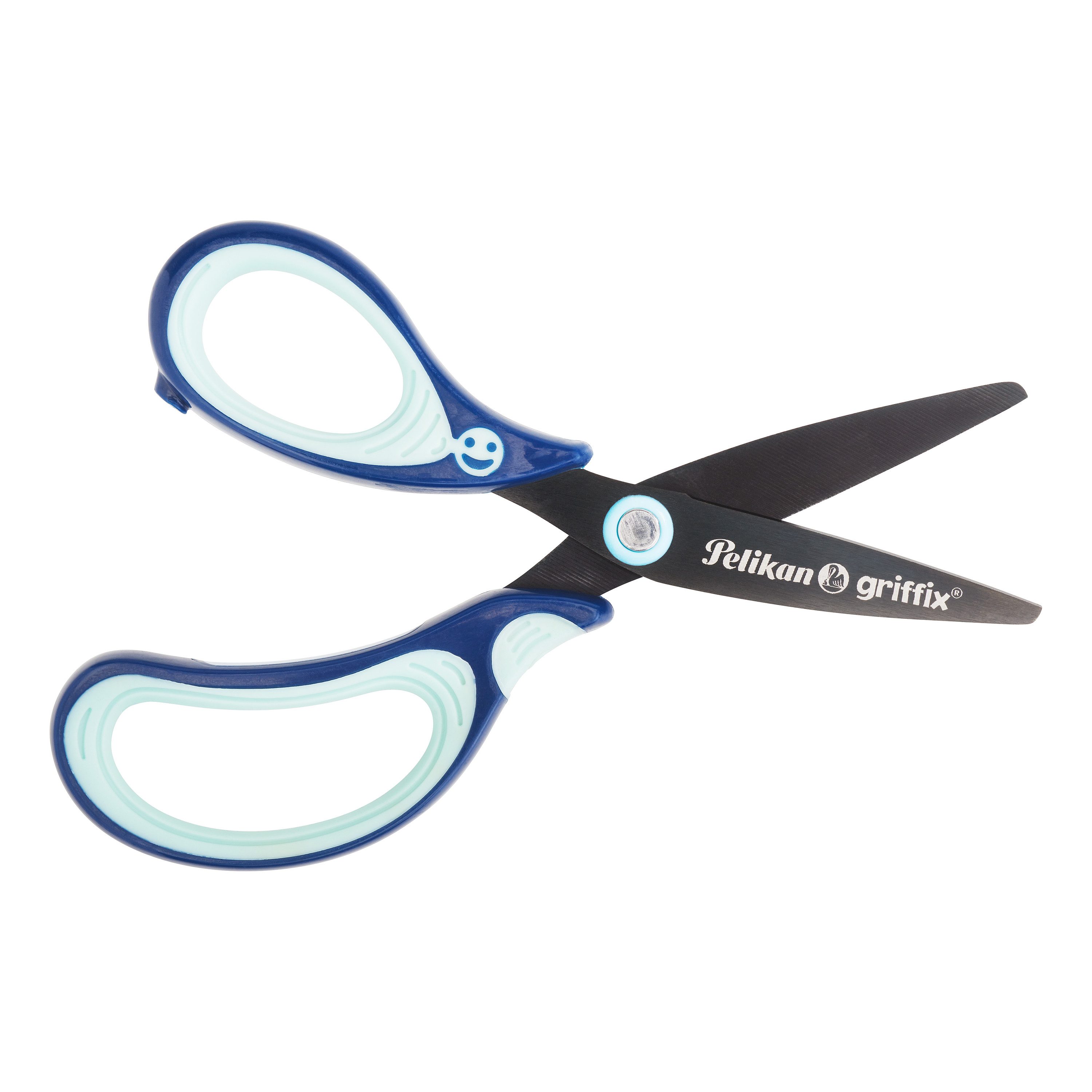 Die Klinge der Pelikan Schulschere 'Griffix', Rund, 14 cm ist durch eine Titan-Nitrid-Beschichtung 3x härter als Stahl. Die abgerundete Klinge eignet sich besonders gut für jüngere Kinder, die das Schneiden schon gut können. Der ergonomische Griff besteht aus hartem und weichem, hochwertigen Kunststoff und ist PVC- und Latex-frei hergestellt. Wie immer bei dem beliebten griffix Schreiblernsystem sorgt das lachende griffix Gesicht für die richtige Handhaltung. Die Kinderschere verfügt über ein Namensfeld, damit auch diese wieder zum Besitzer zurückkehrt.