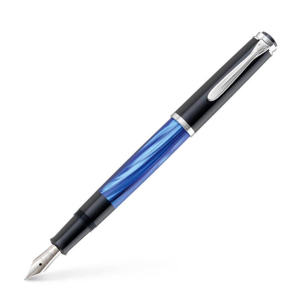 1x Pelikan Füllfederhalter M205 Blau-Mamoriert Feder M, Geschenk-Etui