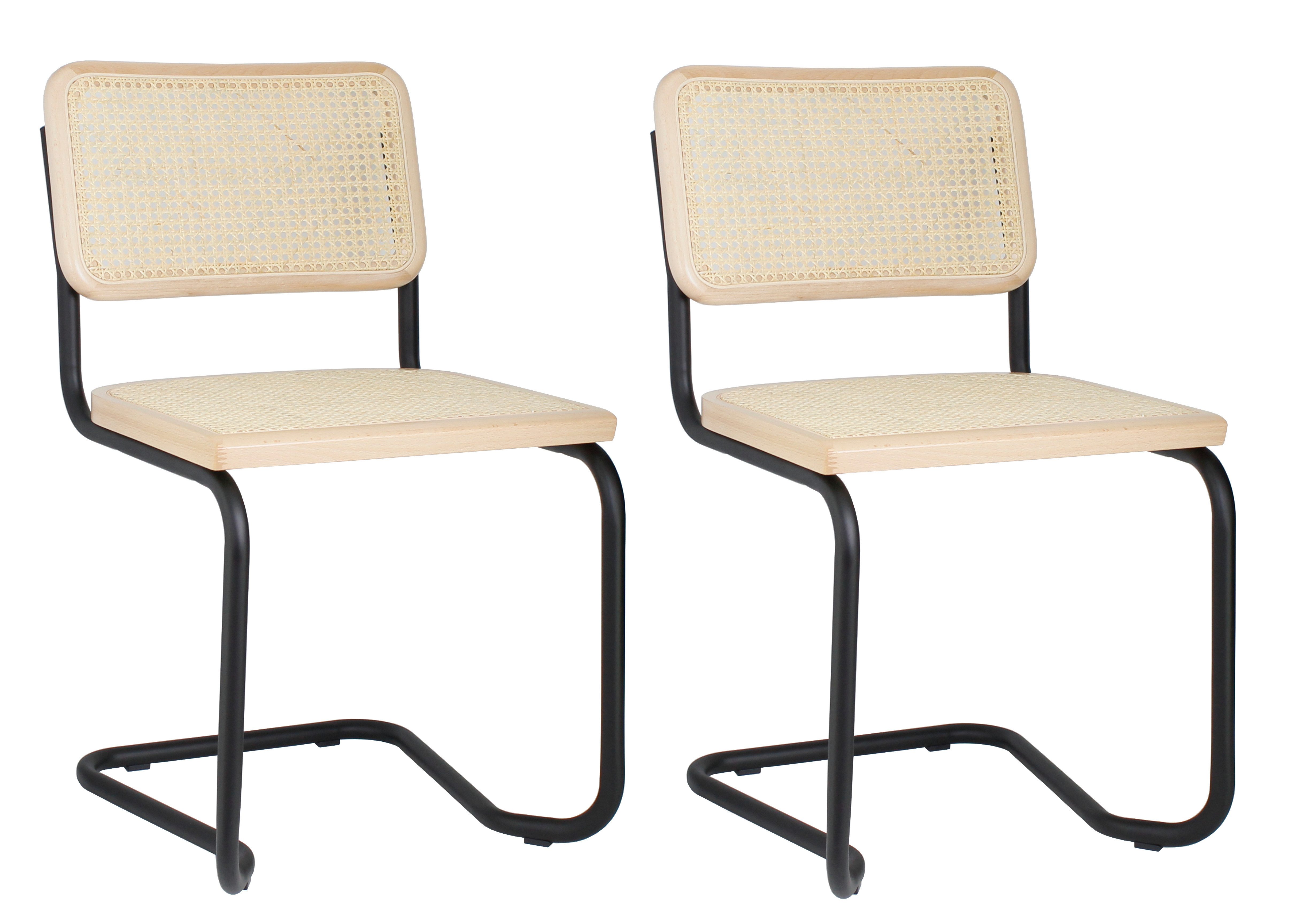 Der Schwingstuhl JENA ist ein echter Klassiker im Bauhaus-Stil, der durch seine Einfachheit und Formschönheit überzeugt. Die Kombination zwischen schwarzem Stuhlgestell, der Sitzfläche und Rückenlehne aus einem Massivholzrahmen versehen mit Flechtwerk in natur (Wiener-Geflecht) macht den Stuhl unverwechselbar.