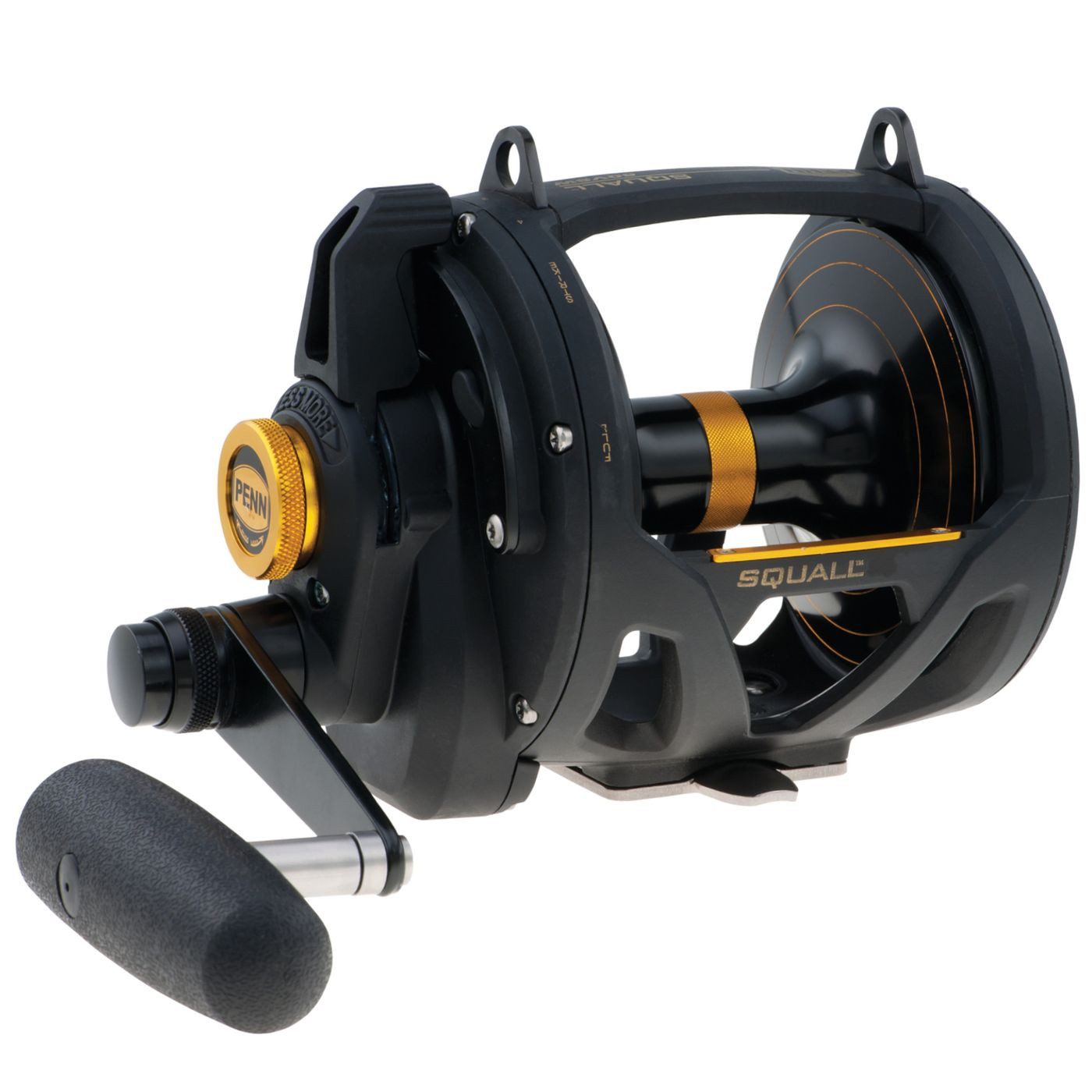 Penn 30VSW Squall Lever Drag 2 Speed - Multirolle Meeresrolle - Die Angelrolle von Penn ist leicht und robust, das sind zwei der Hauptmerkmale der Squall Lever Drag Serie von Penn. Dank des starken Graphit-Gehäuses sind sie sehr leicht und ermöglichen ein nahezu ermüdungsfreies Angeln. Die fein dosierbare Schiebebremse arbeitet auch bei längeren Drills ruckfrei. Ausgestattet ist die Rolle mit der Live Spindle-Spule, die durch die Schnurfüllstandsringe immer anzeigt, ob die Spule zu 1/3, 2/3 oder voll bespult ist. Durch das robuste QuickShift 2-Gang Getriebe können auch schwere Gewichte und große Fische mühelos an die Oberfläche geholt werden. Squall, die richtige Rolle für alle großen Räuber im Süß- und Salzwasser.