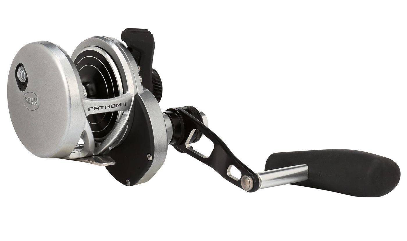 Penn Fathom II Rolle 25NLD2LH - Linkshand Multirolle - Die Angelrolle von Penn ist eine gute Multirolle zum Meeresangeln. Durch die Integration der Handflächen-Seitenplatte und des Rahmens liegt die Rolle kompakt in der Hand und bieten eine hohe Stabilität. Die Pull-to-Turn-Voreinstellknöpfe ermöglichen es dem Angler, die Rolle voreinzustellen. Das Herzstück der FathomTM ist ein Haupt- und Ritzelgetriebe aus Edelstahl und eine geschmiedete und bearbeitete Aluminiumspule.