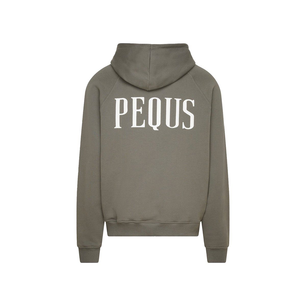 Auf der Rückseite des Hoodies befindet sich unser markantes "PEQUS Logo" Design, das in einem hochwertigen und langlebigen Puffprint aufgebracht ist. Dieses stilvolle Element verleiht Ihrem Look eine subtile, doch auffällige Note und ist ein Ausdruck Ihres individuellen Stils.