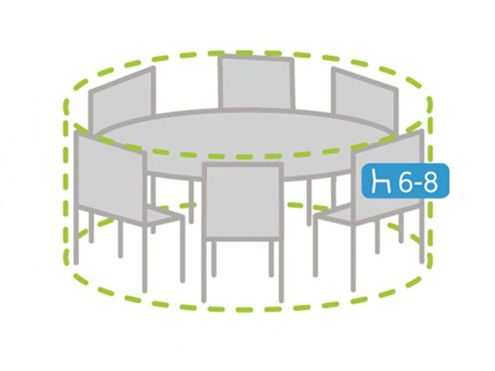 Mit einem Durchmesser von insgesamt 260 cm und einer Höhe von 85 cm eignet sich diese Abdeckung optimal für einen runden Gartentisch mit ca. 2 m Durchmesser und 6-8 Stühlen.