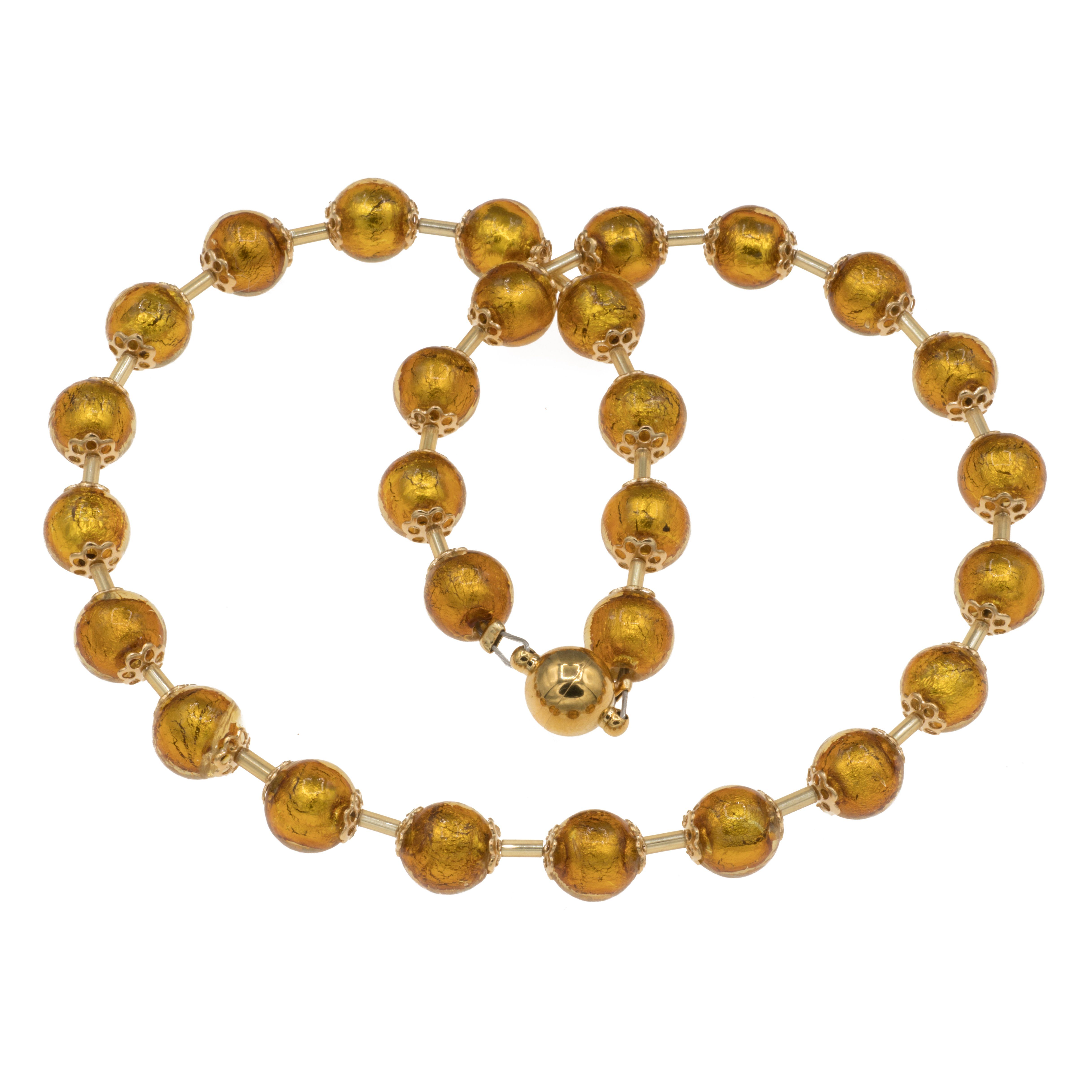 mit Murano Glas Perlen goldbraun mit Goldfolie hinterlegt