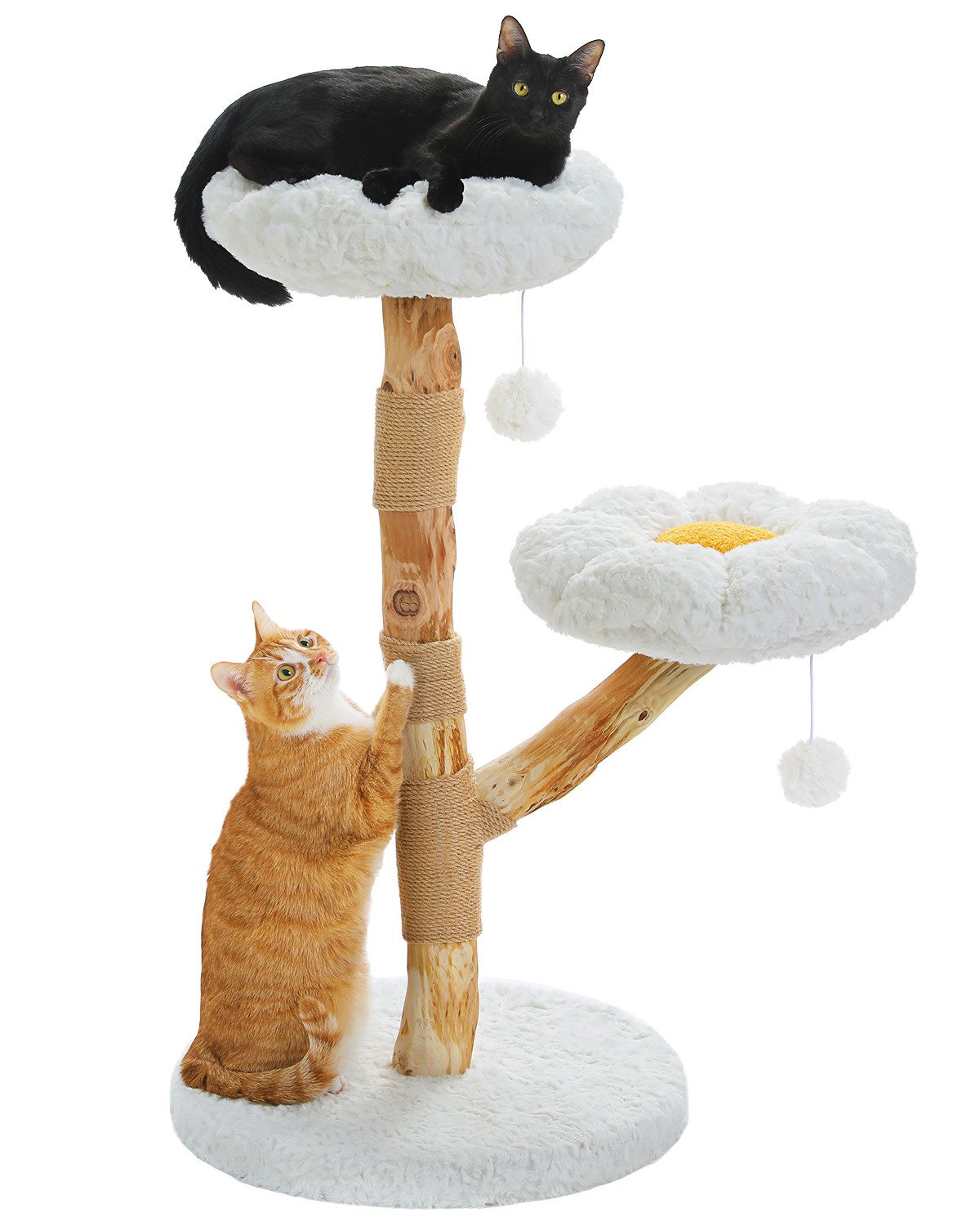 Dieser Holzblumen-Kratzbaum mit zwei niedlichen Blumenbeeten ist mit weichem Wolkenvliesstoff ausgestattet und verleiht Ihrem Zuhause einen raffinierten Touch.
