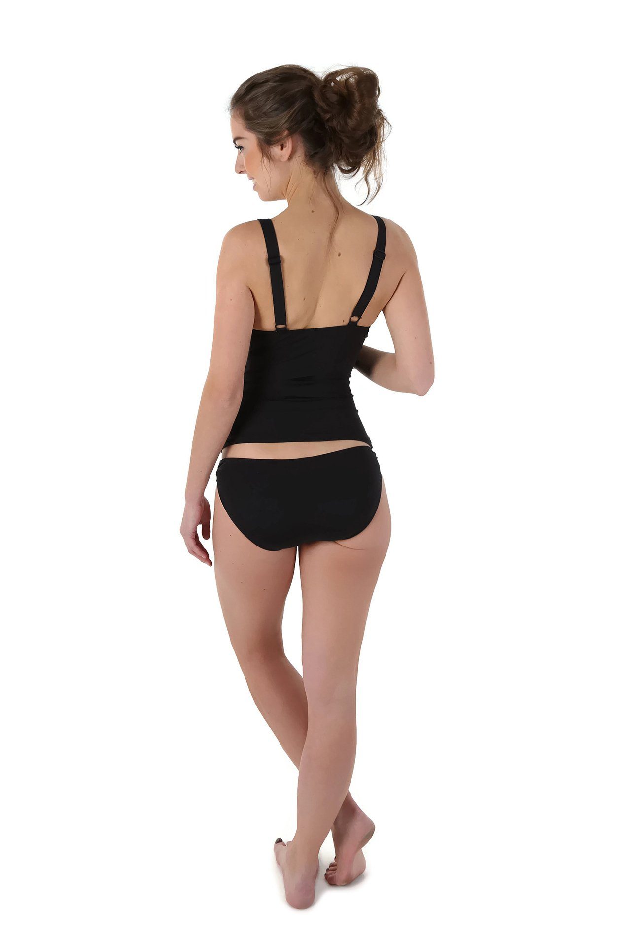 Raffinierte Bademode für Mollige als Tankiniset HELLENA in einem Blau-Türkis Edelsteinton, edlem Matt-Schwarz oder appetitlichen Himbeersorbetton kommt in den Größen S-XXL aus edler Mikroqualität besonders attraktiv daher, ist ideal geschnitten & passend für Körbchengrößen B C bis D Cup und hat keine störenden Bügel. Das Tankinioberteil kann auch als Bikinitop getragen werden und erhält seine tolle Passform und den Halt durch eingesetzte Körbchen mit herausnehmbaren Polstern. Durch die Entnahme entsteht bei Bedarf zusätzlich Volumen und Form im Cup. Die verstellbaren breiten und weichen Träger des Tankinis sind verstellbar und geben ein gutes Tragegefühl. Durch raffiniert eingearbeitete Raffungen paßt sich das Bademoden Oberteil für Curvies perfekt den Rundungen an (ohne zuviel Weite). Der passende Bikinislip, auch mit kleiner Raffung, sitzt schnittig auf Hüfte und fügt sich perfekt in das elegante Ensemble dieses Zweiteilers ein. Das innovative Material ist anschmiegsam, weich, hochelastisch, schnelltrocknend und maschinenwaschbar. Größenfinder Bademode petit amour: Unsere Größen S-XXL basieren auf folgenden Konfektions- und Cupgrößen VOR der Schwangerschaft. Bitte beachten Sie, dass wir die Veränderungen der Figur während der Schwangerschaft schon mit in unsere Größenberechnung einbezogen haben und dass Sie keine Размер größer bestellen sollten. Konfektionsgröße: 36/38 mit Cup B-C = S Konfektionsgröße: 38/40 mit Cup B-C = M Konfektionsgröße: 40/42 mit Cup B-C = L Konfektionsgröße: 42/44 mit Cup B-C = XL Konfektionsgröße: 44/46 mit Cup B-C = XXL