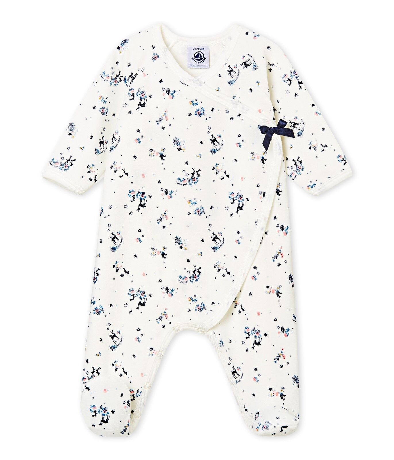 Petit Bateau Dieser süße Nicky Strampler der französischen Edelmarke Petit Bateau begeistert mit einer eleganten Wickeloptik und einem niedlichen Schleifchen. In strahlendem Weiß und mit einem verspielten allover Reh-Print ist er ein echter Hingucker. Dank der praktischen Druckknöpfe lässt er sich komplett schließen, während das hochwertige Material (75 % Baumwolle, 25 % Polyester) für ein angenehmes Tragegefühl sorgt.