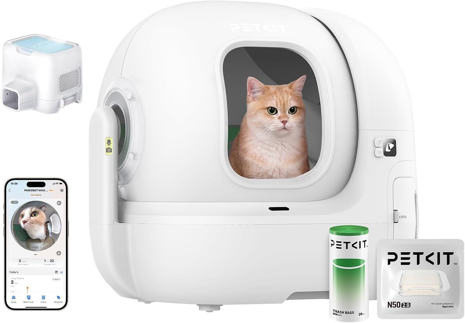 Die selbstreinigende Katzentoilette PETKIT PUROBOT MAX PRO kombiniert automatische Reinigung mit intelligenter Überwachung und gewährleistet so maximale Hygiene und Komfort für Katzenbesitzer. Seine AI-gestützte Erkennung für mehrere Katzen identifiziert präzise die einzelnen Katzen, während ein integriertes Kamerasystem Urinklumpen und Stuhlkonsistenz während der Reinigung visuell analysiert und so hilft, potenzielle Verdauungs- oder Urinprobleme frühzeitig zu erkennen. Eine 210-Grad-Weitwinkelkamera mit Infrarot-Nachtmodus ermöglicht eine 24/7-Live-Überwachung mit einstellbarer LED-Beleuchtung für klare Sicht. Das innovative Abfallentsorgungssystem mit Zugschnur ermöglicht eine problemlose Abfallentsorgung, minimiert Gerüche und sorgt für ein sauberes und bequemes Erlebnis ohne manuelle Handhabung. Der patentierte Anti-Klemm-Mechanismus und 12 Sicherheitssensoren garantieren eine sichere Umgebung für alle Katzen, während das geräumige Design mit 76 Litern Platz für Katzen mit einem Gewicht zwischen 1,5 und 10 kg bietet. Die PETKIT-App bietet anpassbare Reinigungsmodi, Desodorierungseinstellungen und Echtzeit-Benachrichtigungen. Mit einem Geräuschpegel von nur 35 dB arbeitet er leise, und seine beiden austauschbaren Streufilter unterstützen verschiedene Klumpstreuarten. Der PUROBOT MAX PRO ist die ultimative Hightech-Lösung, um den Bereich der Katzentoilette sauber und geruchsfrei zu halten.