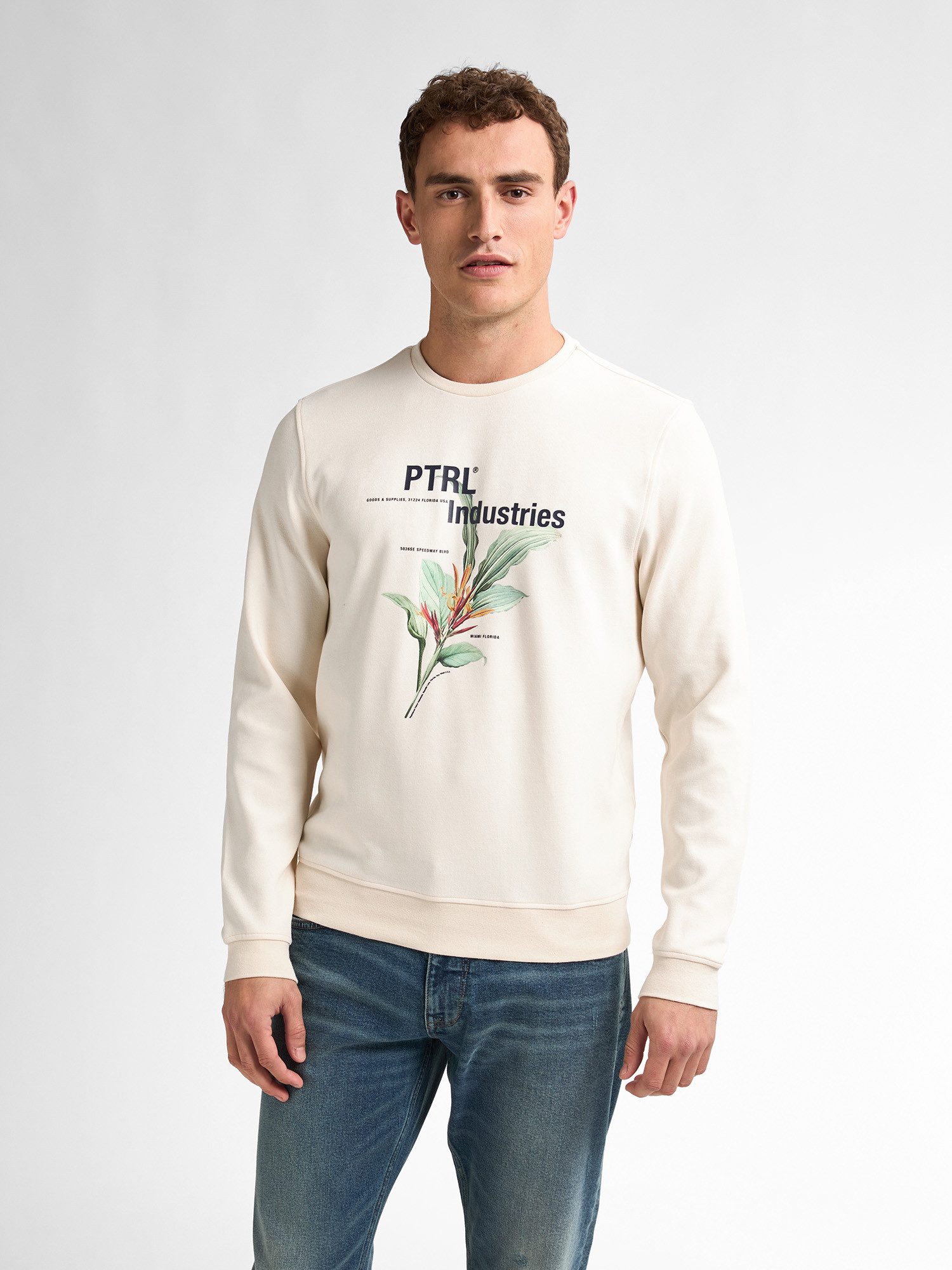 Dieses stylische Sweatshirt kombiniert Komfort mit einem auffälligen Brustprint für einen trendigen Look. Es besteht aus 100 % Baumwolle in weicher French Terry-Qualität und bietet einen bequemen und atmungsaktiven Sitz. Der Pullover hat eine normale Passform für einen lässigen und zeitlosen Look. Der Rundhalsausschnitt und die Rippstrickbündchen an Hals und Ärmeln sorgen für zusätzlichen Komfort und einen gepflegten Look. Perfekt, um deinem Outfit einen frischen, modischen Twist zu verleihen.