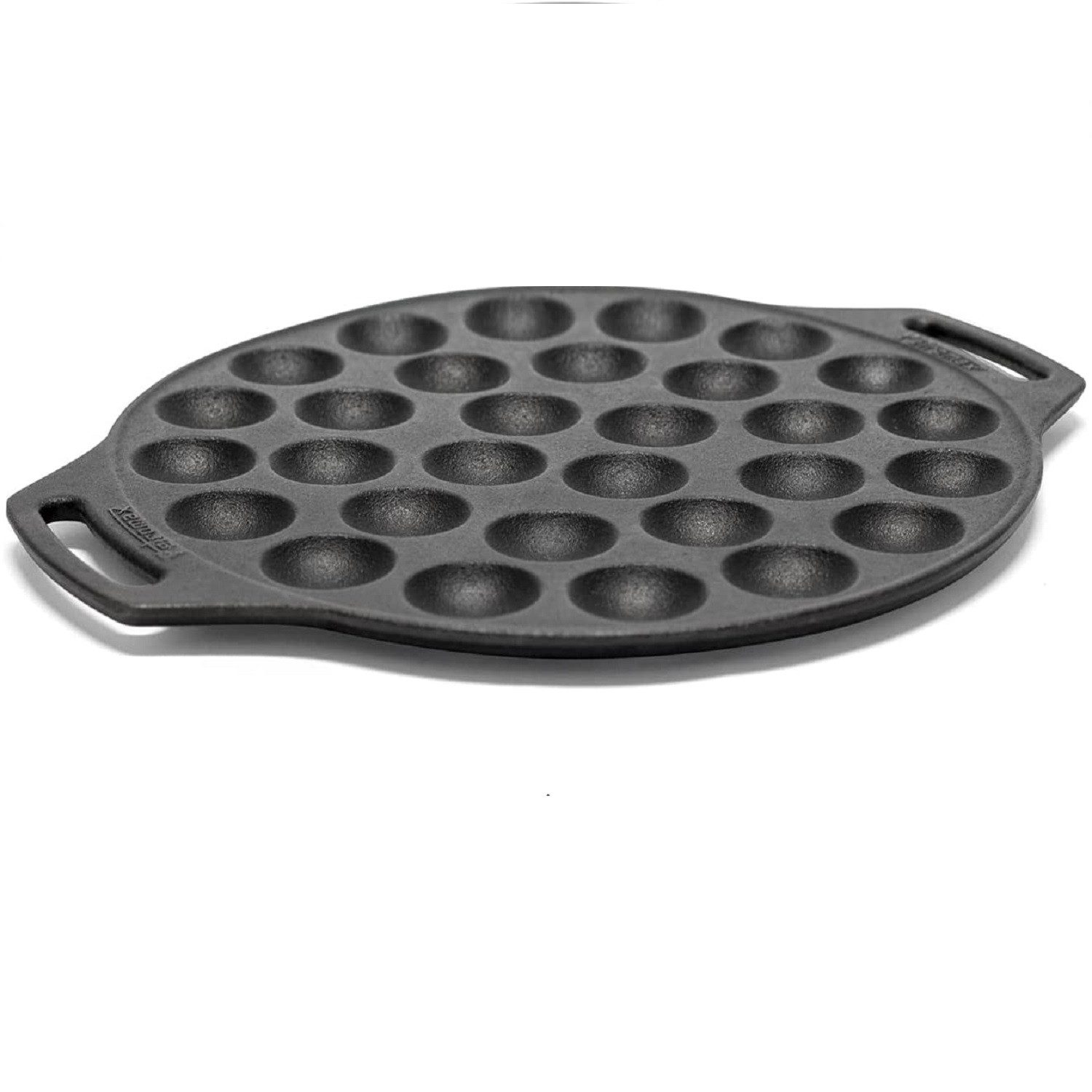 - Egal, ob auf dem Campingplatz, am offenen Feuer, auf dem heimischen Herd oder auf dem Kugelgrill, die gusseiserne Poffertjespfanne mit planem Boden lässt sich einfach überall integrieren.