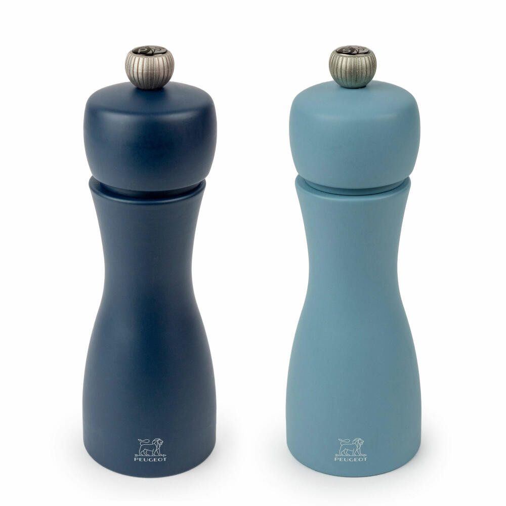 Das ikonische Tahiti-Duo fasziniert mit seiner harmonischen, taillierten Form und leuchtet in ultramodernen, sanften Blautönen. Die hellere Salzmühle ist leicht von der dunkleren Pfeffermühle zu unterscheiden. Dieses Set wird auf Ihrem Tisch für Begeisterung sorgen. Beide Mühlen des Tahiti-Duos sind mit einem Peugeot-Mahlwerk aus Stahl ausgestattet, das in Deutschland eine 25-jährige Garantie hat.