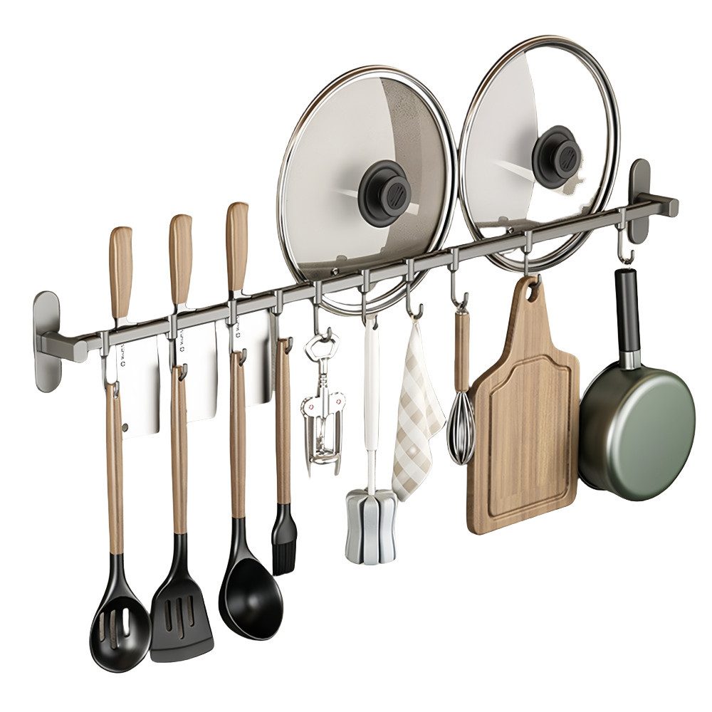 MULTIFUNKTIONELLES DESIGN: Der multifunktionale Edelstahlhaken ist die perfekte Küchenlösung. Er kann als Ablage für Töpfe und Pfannen verwendet werden, auch mit Messerhalter, machen Sie Ihre Küche ordentlicher. Er kann auch als Handtuchhalter für das Badezimmer verwendet werden, was die Verwendung in verschiedenen Bereichen erleichtert.