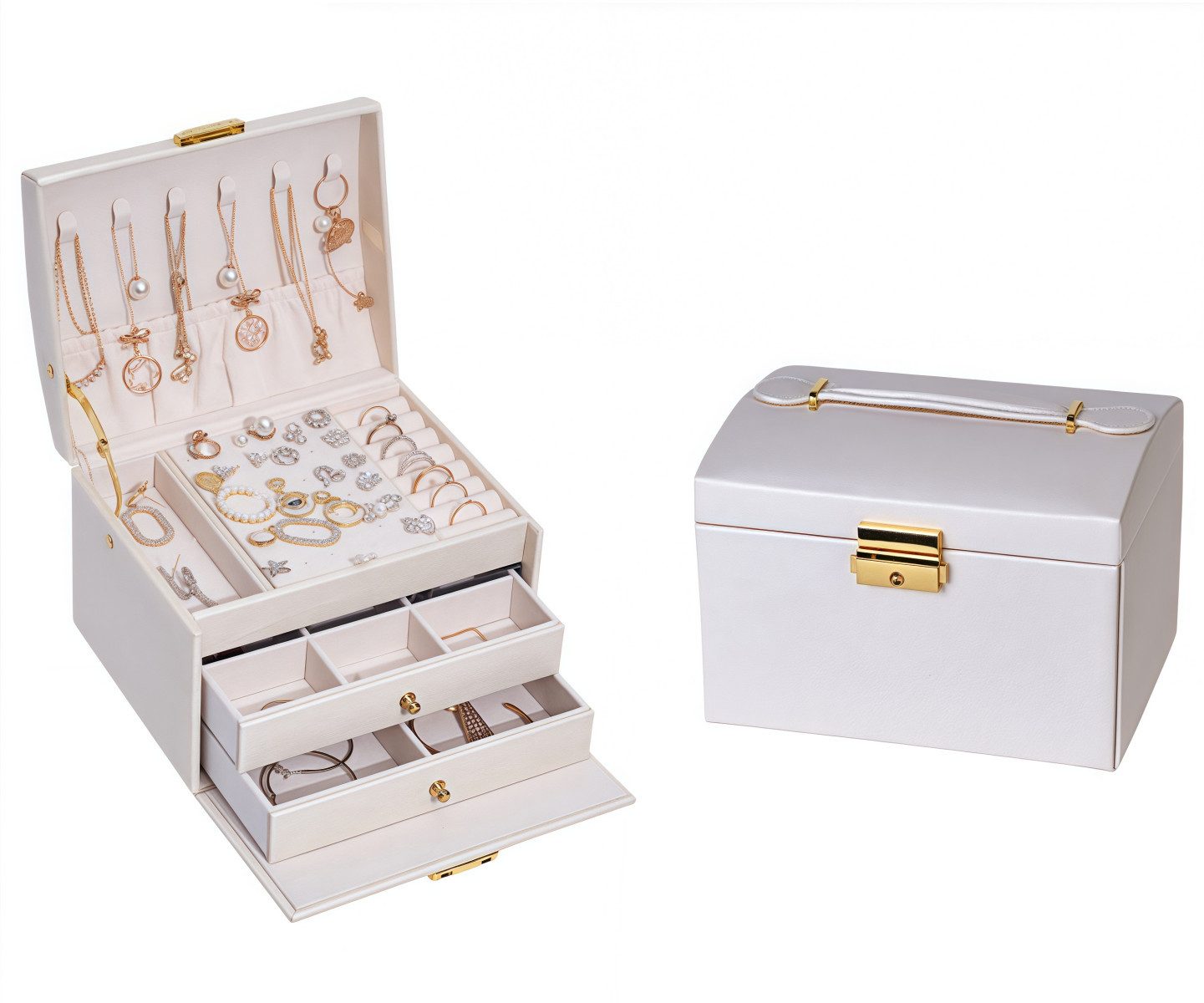 Größe: 17*14*13CM, der geräumige Platz kann leicht Ringe, Ohrringe, Halsketten und andere Arten von Schmuck unterbringen, halten Sie Ihre Sammlung in Ordnung.