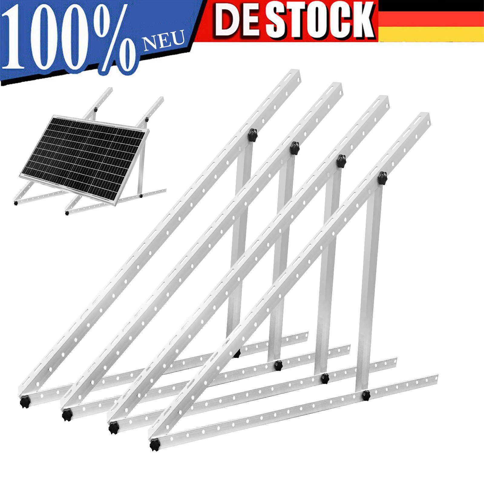 STABILE UND VIELSEITIGE SOLAR PANEL HALTERUNGMontageset aus hochfesten Aluminium Schienen im 4er Pack. Schnelle, einfache und sichere Aufständerung, Aufstellung und Befestigung von Balkonkraftwerk, Mini-PV und Off-Grid Solaranlagen.