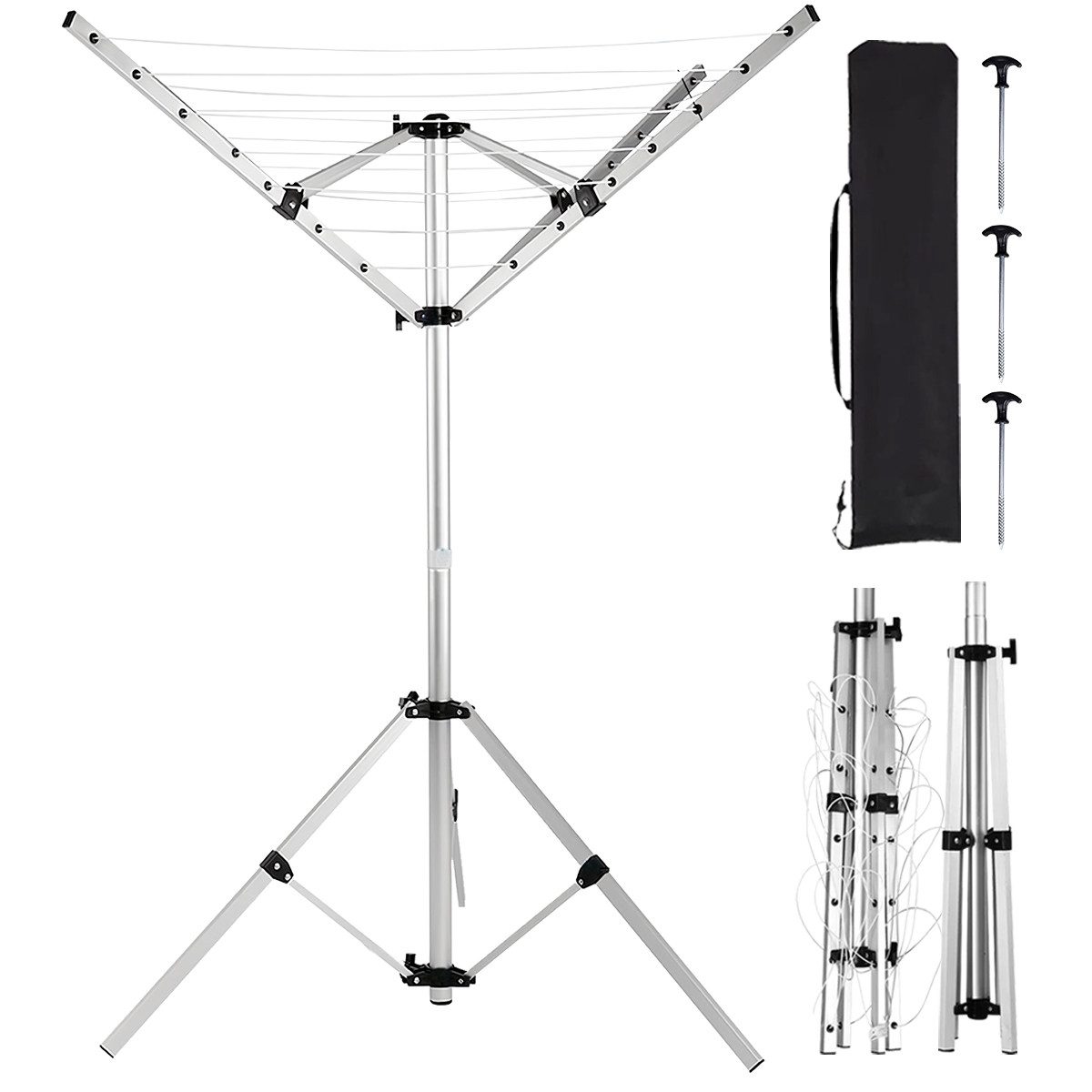 Die faltbare 4-Arm-Wäscheleine ist eine tragbare und einfach zu montierende faltbare Wäscheleine. Ideal für Camping oder auch als Ersatz für Regentage zu Hause, auf dem Balkon oder der Terrasse.