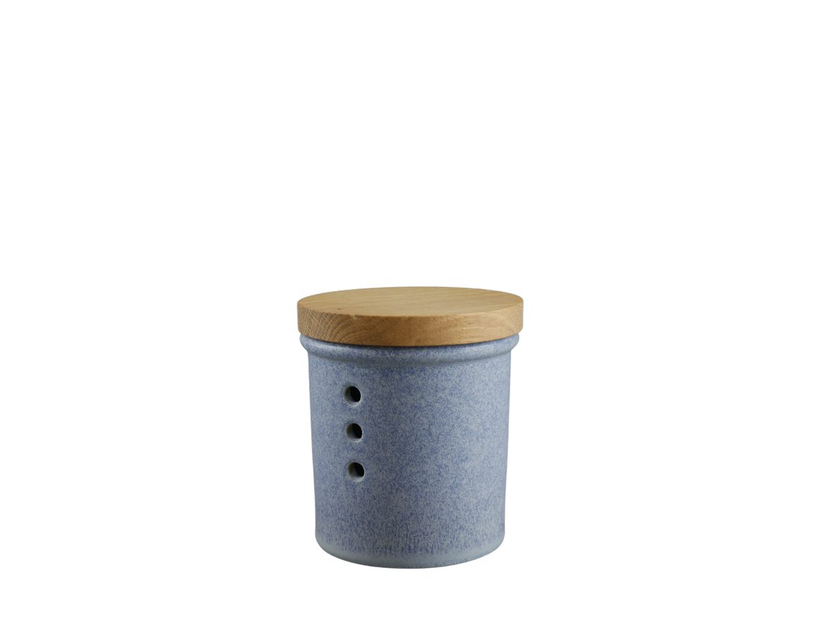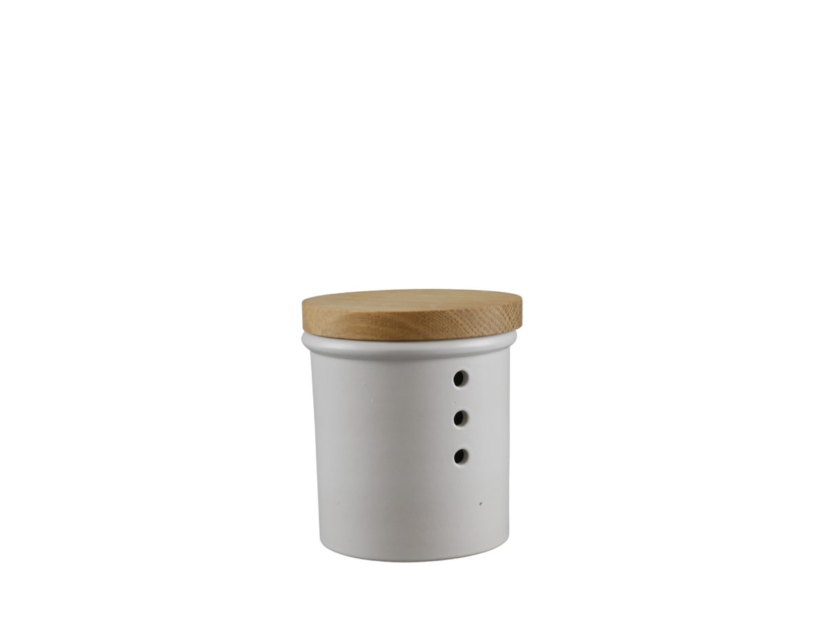 Ausstattung | Deckel aus Eiche, Luftlöcher, Unterteil aus Steinzeug |