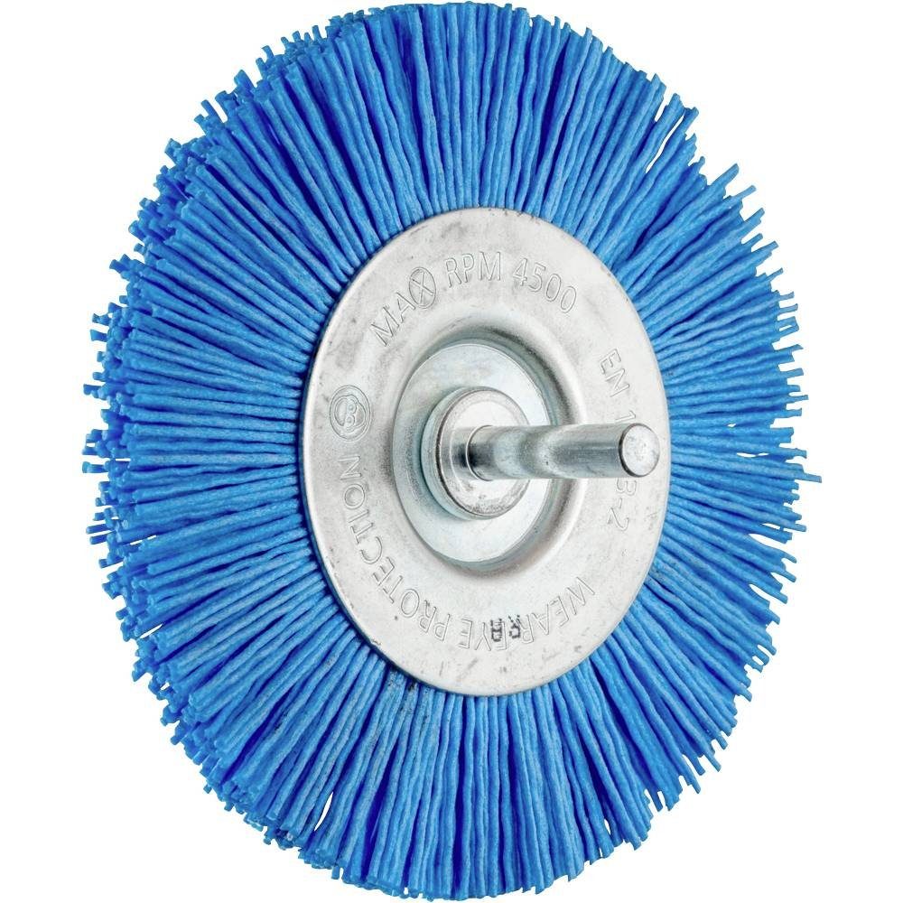 Universell zum Reinigen, Entrosten, Glätten, Putzen von Schweißnähten, leichten Entgraten und Entfernen von Korrosion und Lacken einsetzbar. Speziell für den Einsatz im niedrigen Drehzahlbereich auf Akkuschraubern und Bohrmaschinen entwickelt. Antriebsarten: - Bohrmaschine Anwendungen: - Aufrauen - Entgraten - Reinigen - Strukturieren (Mattieren, Strichmattieren und Satinieren) Anwendungsempfehlung: - Für beste Leistung Werkzeugantrieb mit mindestens 300 Watt verwenden. Material: - Aluminium - Впередe NE-Metalle - Hochwarmfeste Werkstoffe - Kobaltbasislegierungen - NE Metall hart - Bronze - Edelstahl (INOX) - Gusseisen - Holz - Duroplaste - Thermoplaste - Stahl, Stahlguss Produktvorteile: - Optimale Anpassung an die Kontur der Werkstücke durch hohe Flexibilität..