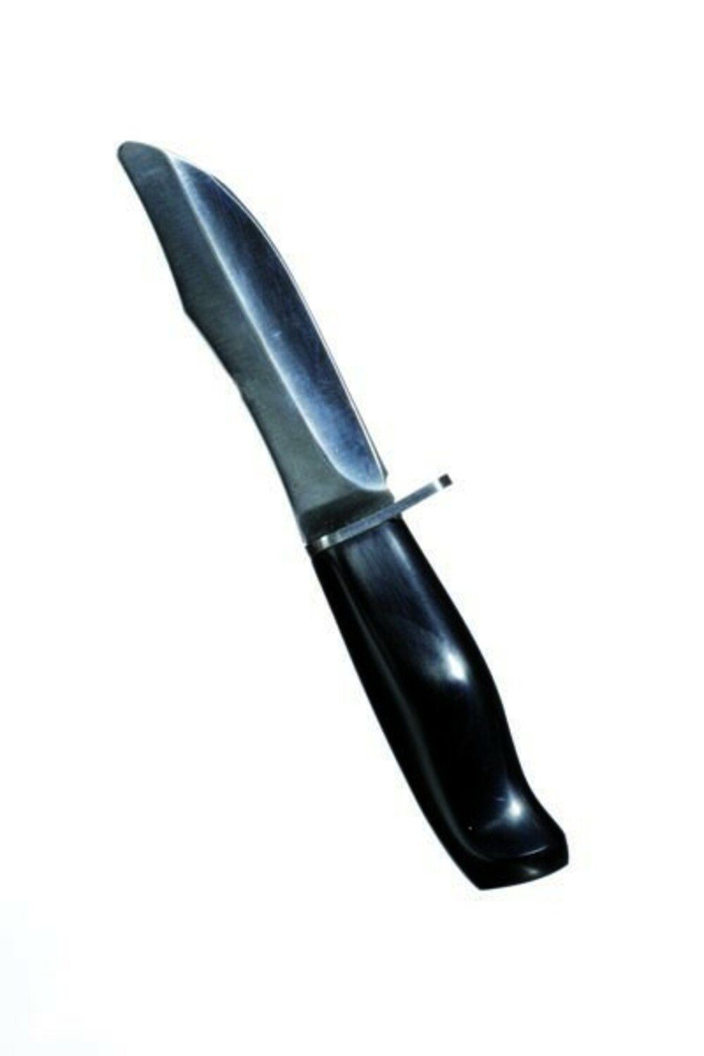 Aus Edelstahl mit abgerundeter Sicherheitsspitze. Im Gürteletui.