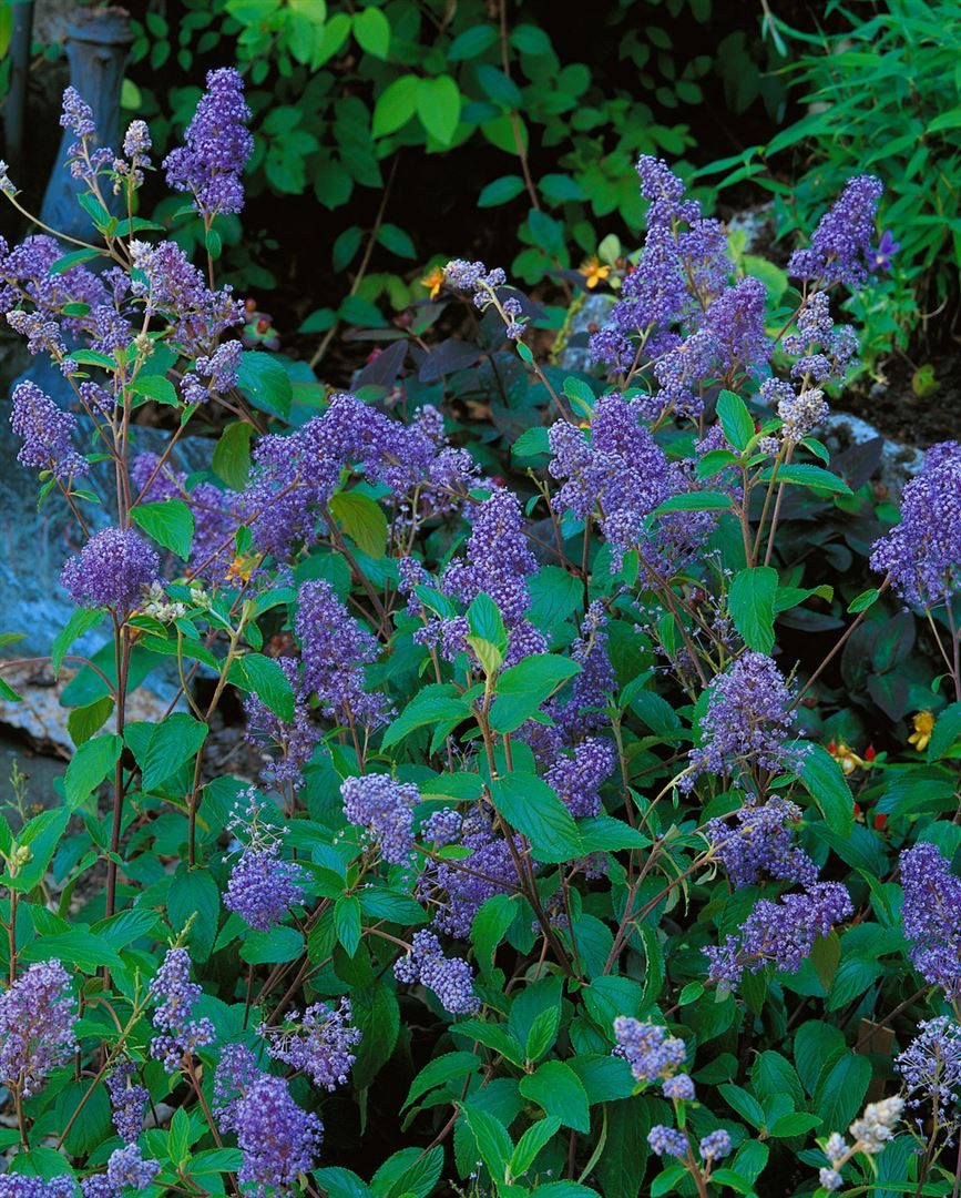 Ceanothus delilianus ‘Henry Desfosse’, die sommerblühende Säckelblume, ist ein eleganter Blütenstrauch, der mit leuchtend blauen, dicht gefüllten Rispen von Juli bis September auffällt und sonnige Gartenbereiche eindrucksvoll betont. Der laubabwerfende Gartenstrauch zeigt frischgrüne, leicht glänzende, ovalen Blätter und einen kompakten, buschigen Wuchs, der je nach Standort etwa 1 bis 1,5 Meter erreicht. Als Zierstrauch bringt er mediterranes Flair in Beet und Vorgarten, eignet sich hervorragend als Solitär für den Blickfang im Eingangsbereich und überzeugt ebenso in der Gruppenpflanzung. In größeren Gefäßen ist er eine reizvolle Kübelpflanze auf Terrasse und Balkon, und selbst als niedrige, lockere Heckenpflanze setzt er farbstarke Akzente in der Spätsaison. Am besten gedeiht ‘Henry Desfosse’ an einem warmen, vollsonnigen, windgeschützten Standort. Der Boden sollte gut drainiert, humos und eher nährstoffreich sein; Staunässe verträgt die Säckelblume nicht. Nach der Etablierung zeigt sie sich vergleichsweise trockenheitsverträglich, regelmäßige, durchdringende Wassergaben in längeren Trockenphasen fördern jedoch Blütenfülle und Vitalität. Eine leichte Frühjahrsschnittpflege, bei der verblühte Triebe und schwaches Holz entfernt werden, erhält die dichte, harmonische Wuchsform und regt die Bildung neuer Blütentriebe an. Eine mäßige Startdüngung im Frühling genügt. In rauen Lagen empfiehlt sich ein Schutz des Wurzelbereichs mit Mulch, Kübel im Winter möglichst geschützt stellen. Kombiniert mit trockenheitsliebenden Stauden wie Lavendel, Perovskia oder graulaubigen Begleitern entsteht eine stimmige, pflegeleichte Pflanzung, die ‘Henry Desfosse’ als charakterstarken Sommerflor eindrucksvoll in Szene setzt.