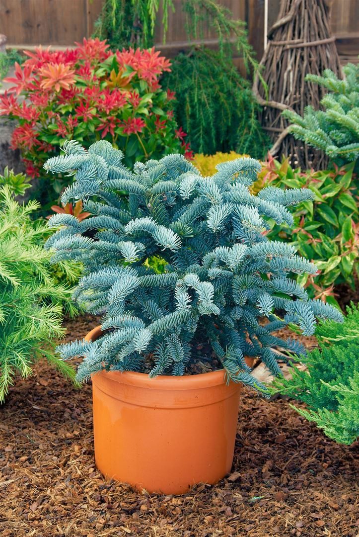 Edeltanne mit langsam kegelfoermiger bis gedrungener Form eignet sich fuer kleine Gaerten und strukturierte Pflanzungen