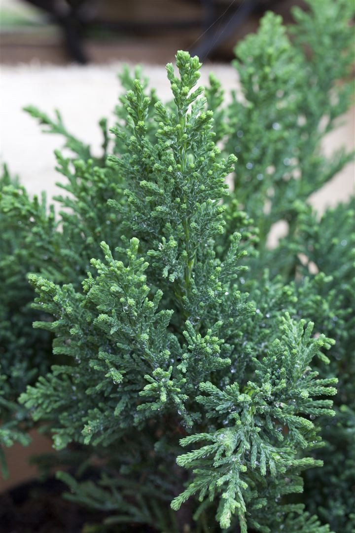Chamaecyparis obtusa Drath ist eine Hinoki Scheinzypresse mit dichtem schuppenfoermigem tiefgruenem Immergruen fuer ganzjaehrige Struktur