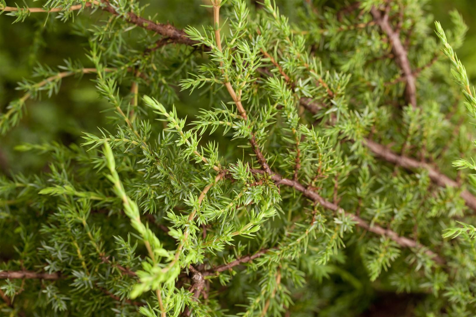 Juniperus communis ‘Hornibrookii’, der Gewöhnliche Wacholder in der niedrigen Sorte ‘Hornibrookii’, ist ein kompakter, flach wachsener Teppich-Wacholder, der als immergrünes Nadelgehölz mit dichtem, breit ausladendem Wuchs überzeugt. Die nadelförmigen, frisch bis blaugrün schimmernden Triebe bilden eine geschlossene, polsterartige Decke und zeigen in der kalten Jahreszeit oft eine dezente bronzige Tönung. Als robuster Zierstrauch mit sehr langsamem Wachstum eignet sich dieser bodendeckende Wacholder hervorragend für Steingarten, Heidegarten, Vorgarten und zur Flächenbegrünung, wo er Wege fasst, Beete einrahmt und Hänge dauerhaft stabilisiert. In größeren Schalen und Töpfen wird er zur pflegeleichten Kübelpflanze auf Terrasse und Balkon; ebenso macht er als niedriger Solitär im Beetbild eine klare, grafische Figur. Bei weiblichen Pflanzen erscheinen mit den Jahren dekorative, blauschwarze Zapfenfrüchte, die den natürlichen Charakter dieses Gartenstrauchs unterstreichen. Am besten gedeiht ‘Hornibrookii’ an einem sonnigen Standort; dort bleibt der Teppich dicht und die Farbe besonders attraktiv. Der Boden sollte gut drainiert, eher mager bis sandig und gern leicht kalkhaltig sein, Staunässe wird nicht vertragen. Nach dem Anwachsen ist der Zwerg-Wacholder ausgesprochen trockenheitsverträglich und genügsam; ein Rückschnitt ist kaum nötig und sollte, wenn überhaupt, nur leicht ins junge Holz erfolgen. In Gruppenpflanzung als Bodendecker, zur Abdeckung von Gräbern oder in der Randbepflanzung schafft dieses kompakte Nadelgehölz ganzjährig Struktur, verbindet Pflanzflächen und harmoniert besonders mit Heide, Gräsern und anderen niedrig bleibenden Koniferen.