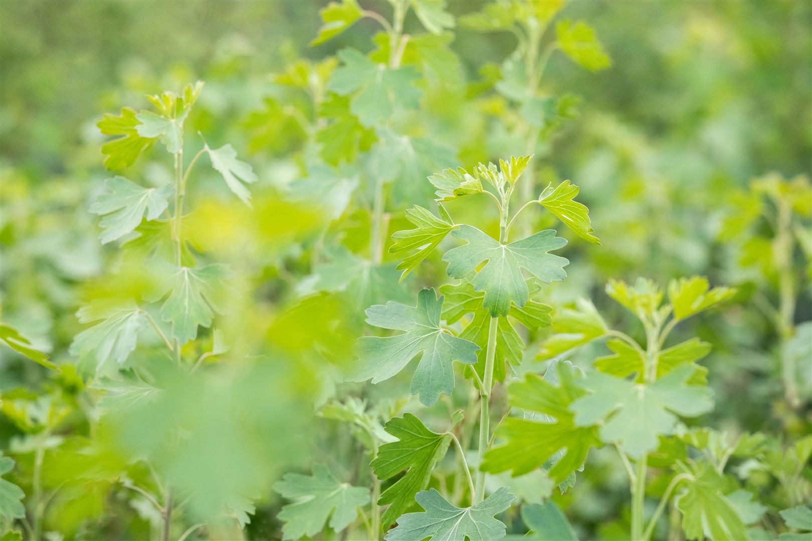 Ribes aureum, die Gold-Johannisbeere, ist ein vielseitiger Blütenstrauch mit charmantem Wildobst-Charakter, der als dekorativer Gartenstrauch sowohl im Zierbeet als auch als lockere Heckenpflanze überzeugt. Im Frühjahr öffnen sich zahlreich goldgelbe, angenehm duftende Blüten in Trauben, die dem Zierstrauch seinen Namen geben und ihn in der Blütezeit von April bis Mai zu einem leuchtenden Blickfang machen. Das frische, leicht gelappte Laub zeigt sich gesund und vital und nimmt im Herbst attraktive orange- bis rotgoldene Töne an. Nach der Blüte entwickeln sich dunkle, aromatische Beeren, die kuchentauglich und für Gelees geeignet sind und die Zierwirkung bis in den Sommer verlängern. Der Wuchs ist aufrecht-buschig, gut verzweigt und robust, wodurch die Gold-Johannisbeere als Solitär, in Gruppenpflanzungen oder als freiwachsende Blütenhecke harmonisch eingesetzt werden kann; auch in einem großen Kübel auf Terrasse oder Balkon macht sie als Kübelpflanze eine gute Figur. Ribes aureum bevorzugt sonnige bis halbschattige Standorte und kommt mit durchlässigen, humosen Böden ebenso gut zurecht wie mit leichteren Gartenböden; kurzzeitige Trockenphasen werden toleriert, Staunässe hingegen vermieden. Ein rückschnittverträglicher Charakter erleichtert die Pflege: Idealerweise erfolgt ein Auslichtungsschnitt nach der Blüte, um die natürliche Form zu erhalten und die Blühfreude zu fördern. Mit ihrer Kombination aus frischer Blütenpracht, saisonaler Laubfärbung und dekorativem Fruchtschmuck bereichert die Gold-Johannisbeere Vorgärten, Bauerngärten und gemischte Strauchpflanzungen gleichermaßen.