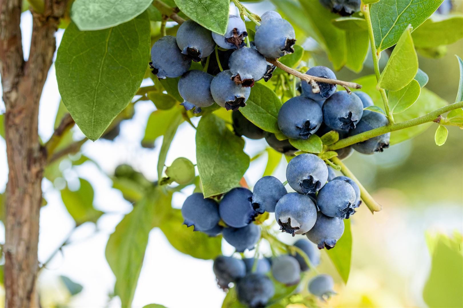 Vaccinium corymbosum ‘Bluejay’, die Kultur-Heidelbeere bzw. Amerikanische Heidelbeere, ist ein vitaler Beerenstrauch mit aufrechter, mittelstarker Wuchsform und elegantem Zierwert. Im Frühjahr erscheinen zahlreiche glockenförmige, weißlich bis cremefarbene Blüten, die den Fruchtansatz für die spätere Ernte sichern und den Blütenstrauch zugleich schmücken. Ab Juni bis Juli reifen große, hellblaue, aromatische Beeren mit fester Schale und feinem Wildfruchtaroma, ideal zum Naschen, für Kuchen oder als frische Tafelbeere. Das mittelgrüne Laub verfärbt sich im Herbst attraktiv orange- bis scharlachrot und macht den Gartenstrauch auch als Solitär oder in der Gruppenpflanzung zum Blickfang. ‘Bluejay’ eignet sich für das Beerbeet, den Vorgarten, als locker fruchtende Heckenpflanze oder als Kübelpflanze auf Terrasse und Balkon. Für eine reiche Ernte bevorzugt die Staude bzw. das Obstgehölz einen sonnigen bis halbschattigen Standort mit gleichmäßig frischer, gut durchlässiger, humoser und saurer Erde (pH circa 4,0–5,5). Kalkarme Rhododendronerde, eine Mulchschicht aus Rindenmaterial und Bewässerung mit Regenwasser unterstützen die optimale Entwicklung. Die Sorte ist selbstfruchtbar, erzielt jedoch in Nachbarschaft weiterer Heidelbeersorten noch höhere Erträge und eine gleichmäßigere Reife. Pflegeleicht und frosthart benötigt ‘Bluejay’ nur einen maßvollen Schnitt: Ab dem vierten bis fünften Standjahr werden ältere, wenig tragende Triebe bodennah entfernt, um junges Fruchtholz zu fördern. Eine gleichmäßige Bodenfeuchte und dezente, saure Langzeitdüngung im Frühjahr genügen, damit dieser Fruchtstrauch seine zuverlässigen Erträge und seinen hohen Zierwert Jahr für Jahr ausspielt.