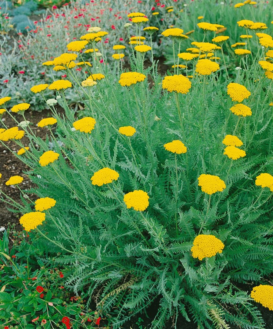 Kompakte Balkanschafgarbe mit goldgelben Scheindolden Bluete Juni bis August ideal fuer sonnige Lagen