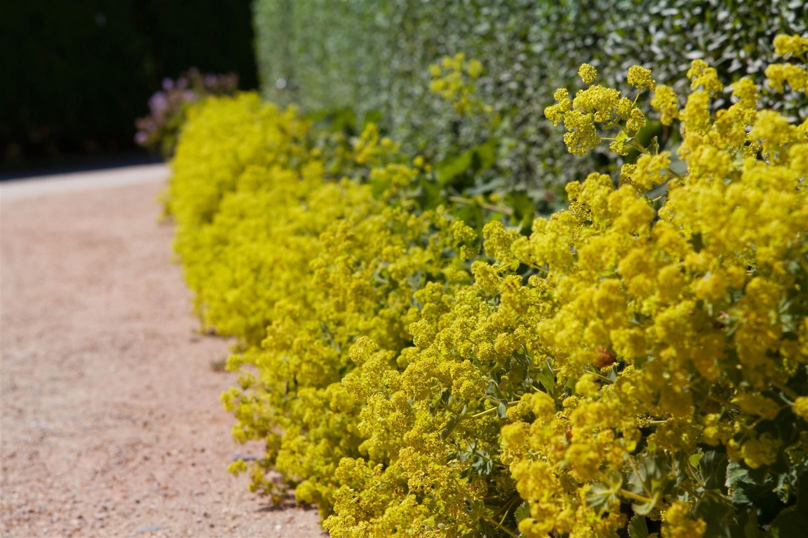 Alchemilla xanthochlora, der echte Frauenmantel, ist eine klassische Gartenstaude mit unverwechselbarem Charme. Die dekorativen, rundlich gefalteten, graugrünen Blätter sammeln Tautropfen zu funkelnden Perlen und bilden einen dichten, vitalen Blattschopf. Von Juni bis August erscheinen schwebende, schwefelgelbe bis chartreusefarbene Blütenrispen, die in Wolken über dem Laub stehen und jede Staudenrabatte, den Bauerngarten oder den Gehölzrand elegant aufhellen. Als horstbildende Staude wächst Frauenmantel kompakt bis locker buschig, erreicht meist 30 bis 40 cm Höhe und eignet sich hervorragend als Bodendecker im Vordergrund von Beeten, entlang von Wegen oder in Gruppenpflanzung, wo er Übergänge weichzeichnet und andere Blütenstauden harmonisch verbindet. Auch als dezente Solitärpflanze im Vorgarten oder als zurückhaltende Kübelpflanze auf Terrasse und Balkon setzt Alchemilla natürliche Akzente; die zarten Blüten eignen sich zudem gut für den Schnitt und trockene Arrangements. Am liebsten steht Frauenmantel sonnig bis halbschattig auf frischen, humosen, durchlässigen Böden, verträgt aber auch leichten Kalk und zeitweilige Trockenheit, sofern der Standort nicht staunass ist. Ein Rückschnitt nach der Hauptblüte hält den Gartenstrauch optisch sauber, regt einen kompakten Neuaustrieb an und kann eine dezente Nachblüte fördern. Ältere Horste lassen sich im Frühjahr oder Herbst problemlos teilen, wodurch sich Bestände verjüngen und erweitern. Robust, winterhart und dauerhaft, ist Alchemilla xanthochlora eine vielseitige Zierstaude, die mit natürlicher Leichtigkeit Beete strukturiert und langlebige Pflanzbilder schafft.