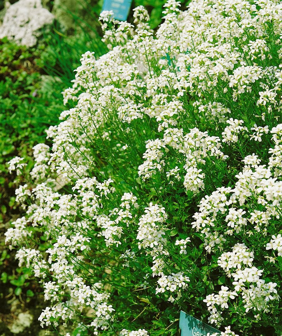 Arabis procurrens Neuschnee mit reinweißen Blüten April Mai teppichbildende Polsterstaude