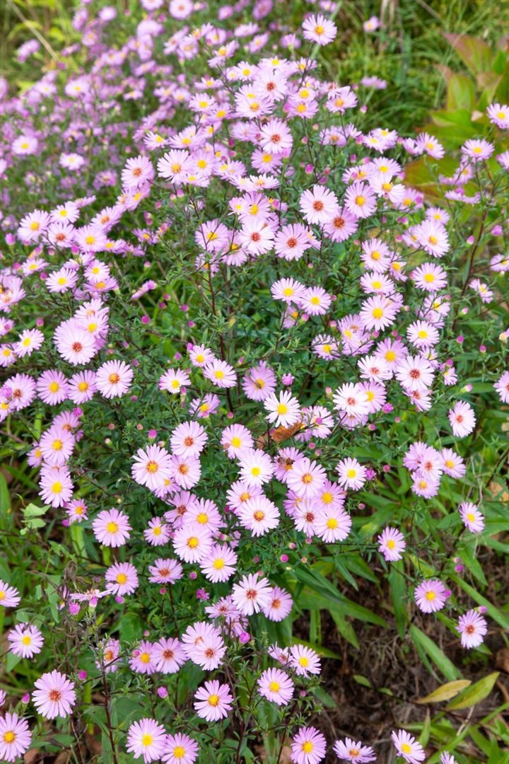 Aster vimineus ‘Lovely’, die elegante Herbstaster bzw. Myrten-Aster, setzt als spätsommerlicher bis herbstlicher Blütenstar eindrucksvolle Akzente im Ziergarten. Unzählige, zart rosaviolette bis helllila Körbchenblüten mit leuchtend gelber Mitte erscheinen von September bis Oktober in dichter Fülle und umspielen den locker aufrechten, reich verzweigten Wuchs. Das schmale, lanzettliche Laub bleibt bis in den Herbst frischgrün und bildet einen feinen Kontrast zur leichten, wolkigen Blütenwirkung. Als robuste Blütenstaude überzeugt Aster vimineus ‘Lovely’ im Staudenbeet, in der klassischen Rabatte und im Bauerngarten ebenso wie im modernen Vorgarten. Sie eignet sich hervorragend für Gruppenpflanzungen, wo sie als Blütenwolke Tiefe und Struktur erzeugt, wirkt aber auch als Solitär charmant und lässt sich als Kübelpflanze auf Terrasse oder Balkon attraktiv in Szene setzen. Ein sonniger, warm gelegener Standort fördert die reiche Blütenbildung; in hellem Halbschatten bleibt die Staude ebenfalls zuverlässig. Der Boden sollte durchlässig, humos und gleichmäßig frisch sein, Staunässe wird vermieden, eine leichte Frühjahrsdüngung unterstützt die Vitalität. In Trockenphasen freut sich die Pflanze über zusätzliche Wassergaben, ein Rückschnitt nach der Blüte hält die Staude kompakt. Mehrjährige Teilungen alle paar Jahre verjüngen den Horst und sichern Blühfreude. Harmonische Partner sind zierende Gräser, Sedum, Sonnenhut und spätere Rosen, wodurch im Gartenbeet ein lange anhaltendes, stimmiges Farbspiel entsteht. Als schnittgeeigneter Blütenstrauch im weiteren Sinne bereichert Aster vimineus ‘Lovely’ herbstliche Sträuße und bringt natürliche Leichtigkeit in jedes Arrangement.