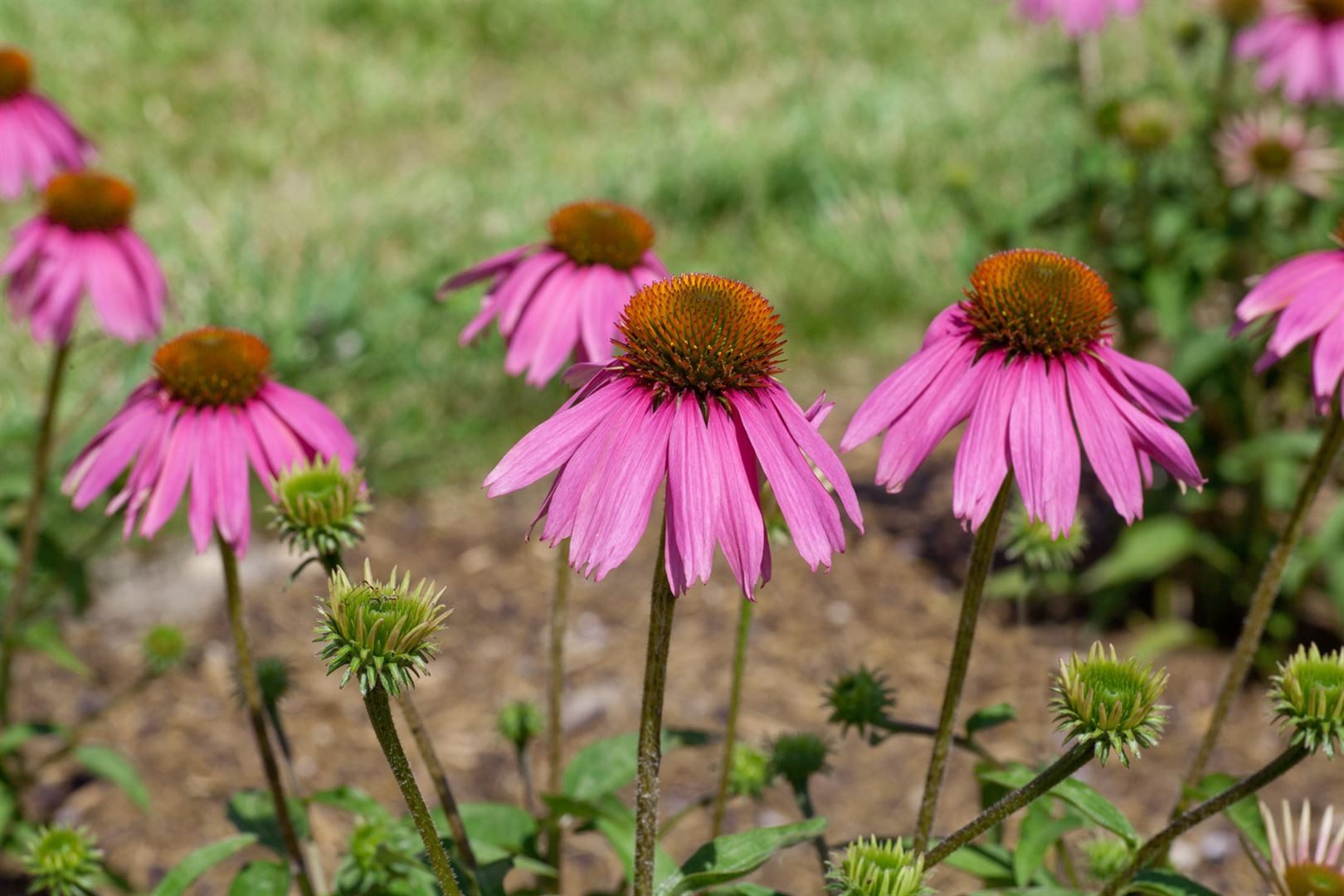 Kompakte Sorte des Purpur Sonnenhuts ca 40 bis 60 cm hoch standfest bildet dichte Horste