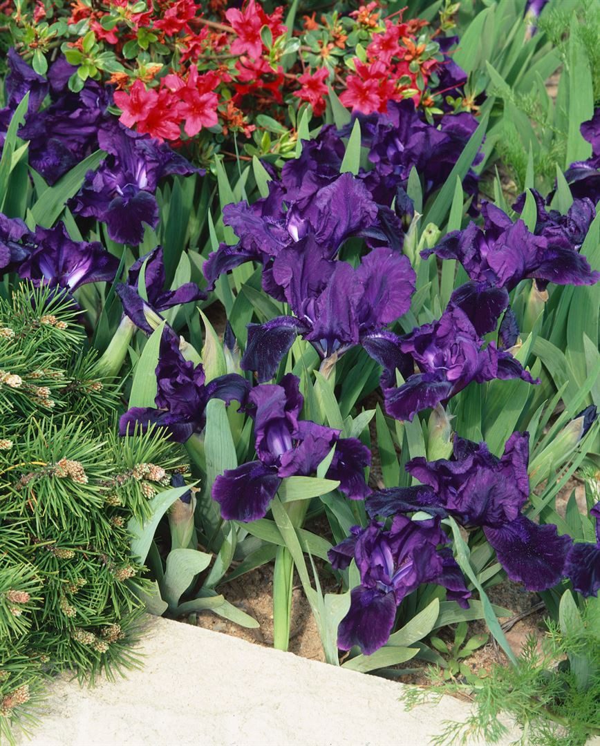 Sie blueht von April bis Mai mit auffaelligen Blueten ueber schwertfoermigem blaugruenem Laub und wird horstbildend etwa 15 bis 25 cm hoch